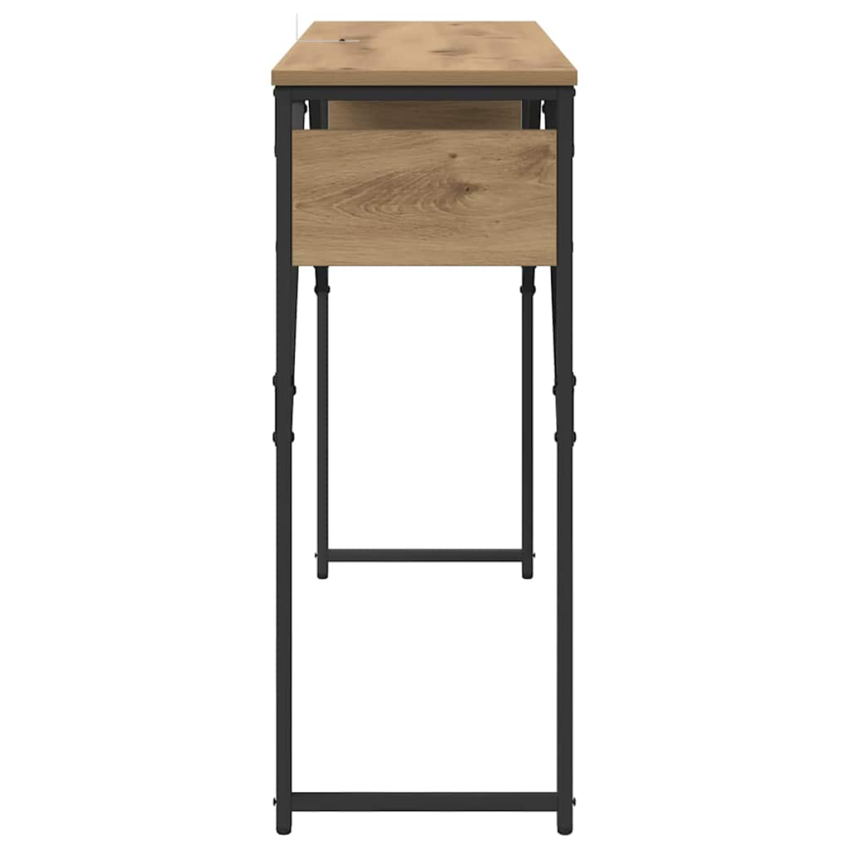 This Industrial Console Table embodies a blend of urban style and functionality, perfect for adding a touch of rugged elegance to any living space. With its smooth, matte finish, it exudes a contemporary charm while offering practical storage solutions. The rectangular shape fits seamlessly against walls, making it ideal for narrow spaces and visually enhancing room layouts. Materials: The console table is built using top-grade engineered wood for and durable construction. The opacity of this well-crafted piece means its beauty isn’t only surface-deep, but extends to its core, ensuring lasting performance and style within your living room. Included Components: It features board shelves, crafted from various materials like MDF or plywood. This combination provides robust support and versatile storage options, making organization a breeze in any household setting, while contributing to the table's modern, industrial aesthetic. Features /Function /Design: Designed with a smooth texture and a matte finish, this console table fits into a variety of stylistic settings. Its open shelving provides accessible storage, perfect for showcasing decorative items, while offering handy spots for everyday essentials, echoing a warehouse-like charm and urban sophistication. Recommended Uses: Positioned ideally in living rooms, hallway corners, or office spaces, this piece serves as a central hub for decorative items, books, or even multimedia gadgets. Its narrow design is perfect for smaller spaces, offering strong yet stylish surfaces without overwhelming your room. Care &Maintenance: To keep the console table looking its best, use a damp cloth for cleaning and avoid harsh chemicals or abrasives. This minimal upkeep ensures a lasting shine and appearance, preserving the pristine quality of your furniture for years to come.