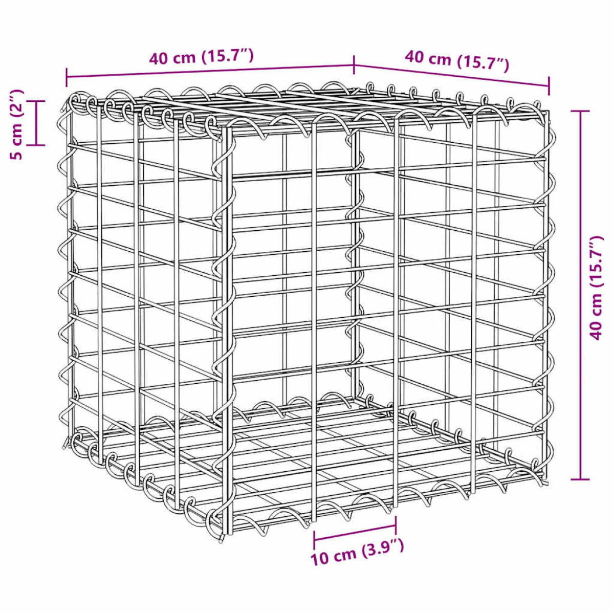 vidaXL Cube Gabion Raised Bed Steel Wire 40x40x40 cm