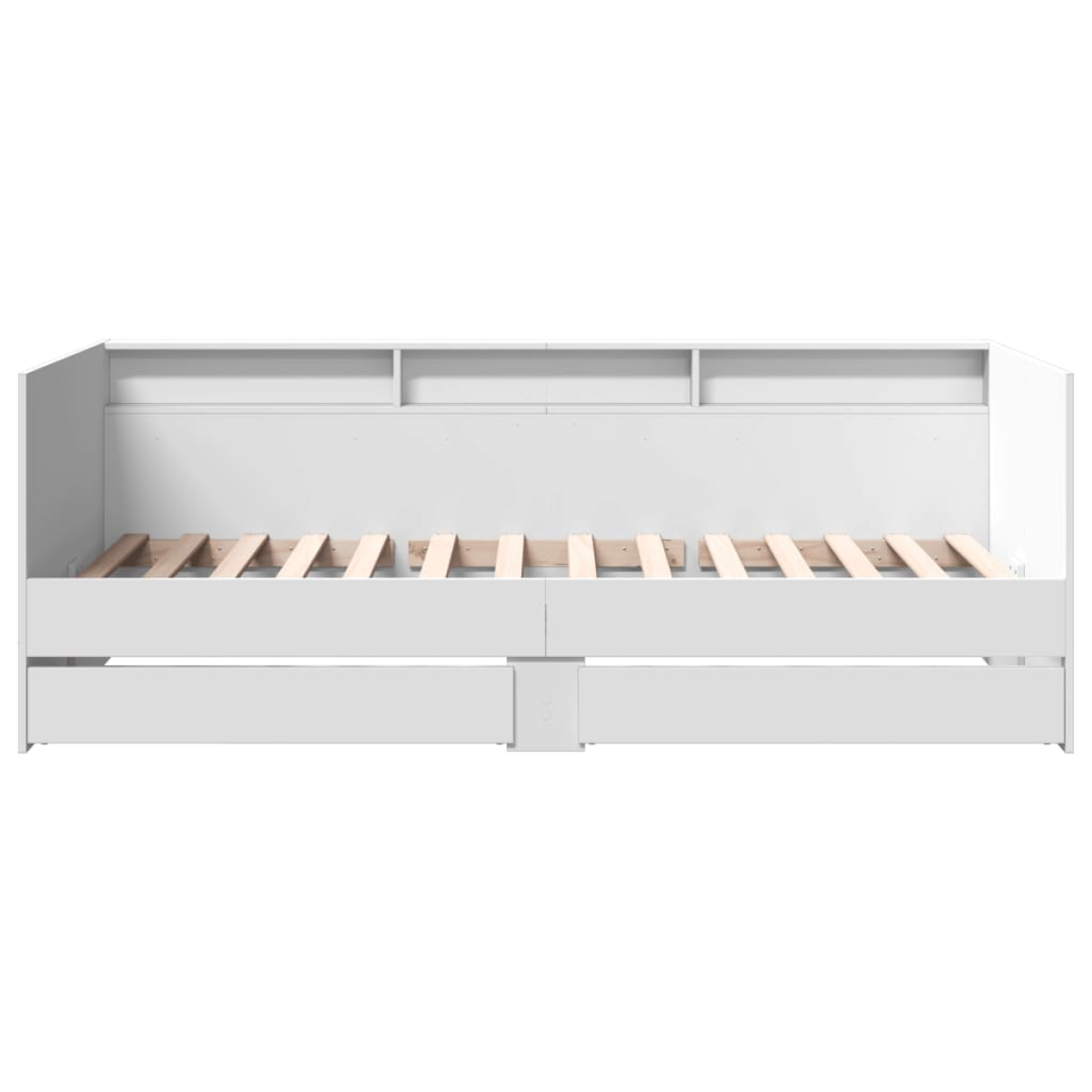This 2-in-1 daybed with drawers, serving as both a sofa and bed, makes a practical and eye-catching addition to your living room or bedroom. Versatile daybed: The sofa bed functions as a sofa during the day and as a bed at night, providing a convenient solution for hosting guests. Ample storage space: This guest bed has 2 drawers with wheels that provide ample space for storing your clothes, socks, toys, cushions, etc.Solid construction: This day bed sofa has a sturdy frame made of engineered wood. The engineered wood is of exceptional quality with a smooth surface and features strength, stability and resistance to moisture. Good to know:The delivery includes a daybed frame only. The mattress is not included. You can check our shop for the matching mattresses.