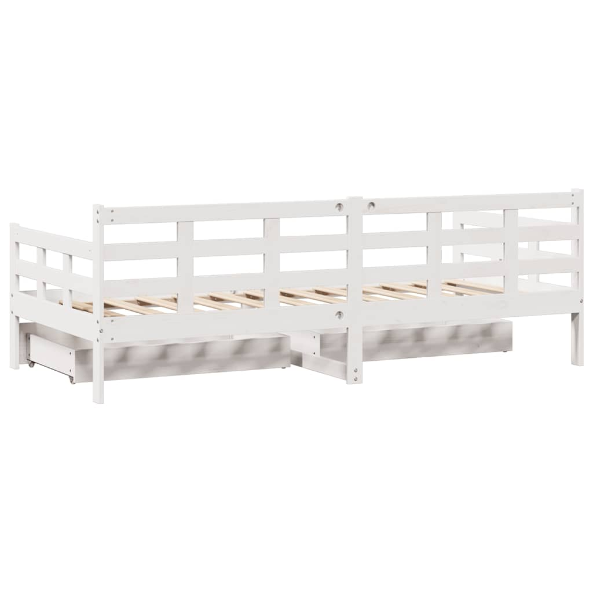 This 2-in-1 daybed with drawers, serving as both a sofa and bed, makes a practical and eye-catching addition to your living room or bedroom. Stable and long-lasting frame: Solid pinewood is known for its strength and durability. Its straight grains and distinctive knots contribute to its rustic charm.3-sided bed rails: This sleeper bed has a unique design on the side of the bed, providing a sense of security and also adding a touch of sophisticated style to your home.Slats for optimal support: The couch bed is complete with slats to offer essential support and breathability to your mattress.Rustic charm: The sofa bed gives your space rustic undertones that can be really relaxing. The calming effect of this wooden day bed turns any bedroom, guest room into a soothing place while adding a natural element to the room.Ample storage space: This guest bed has two drawers that provide ample space for storing your clothes, socks, toys, cushions, etc. Good to know:Mattresses are not included with this bed. We do offer a various selection of mattresses. You can check our shop for matching mattresses.