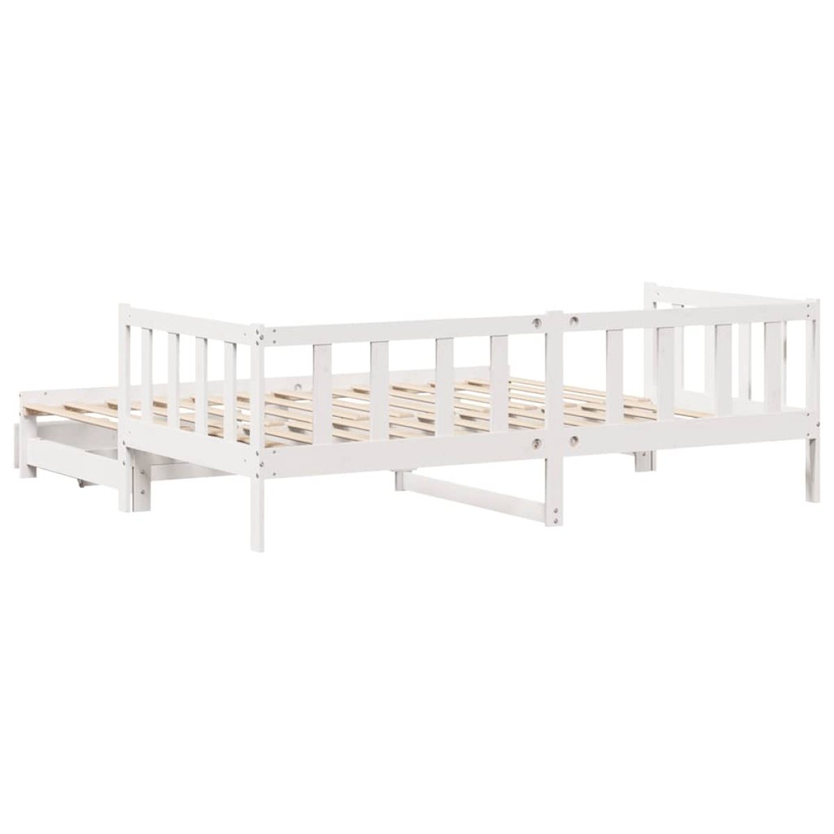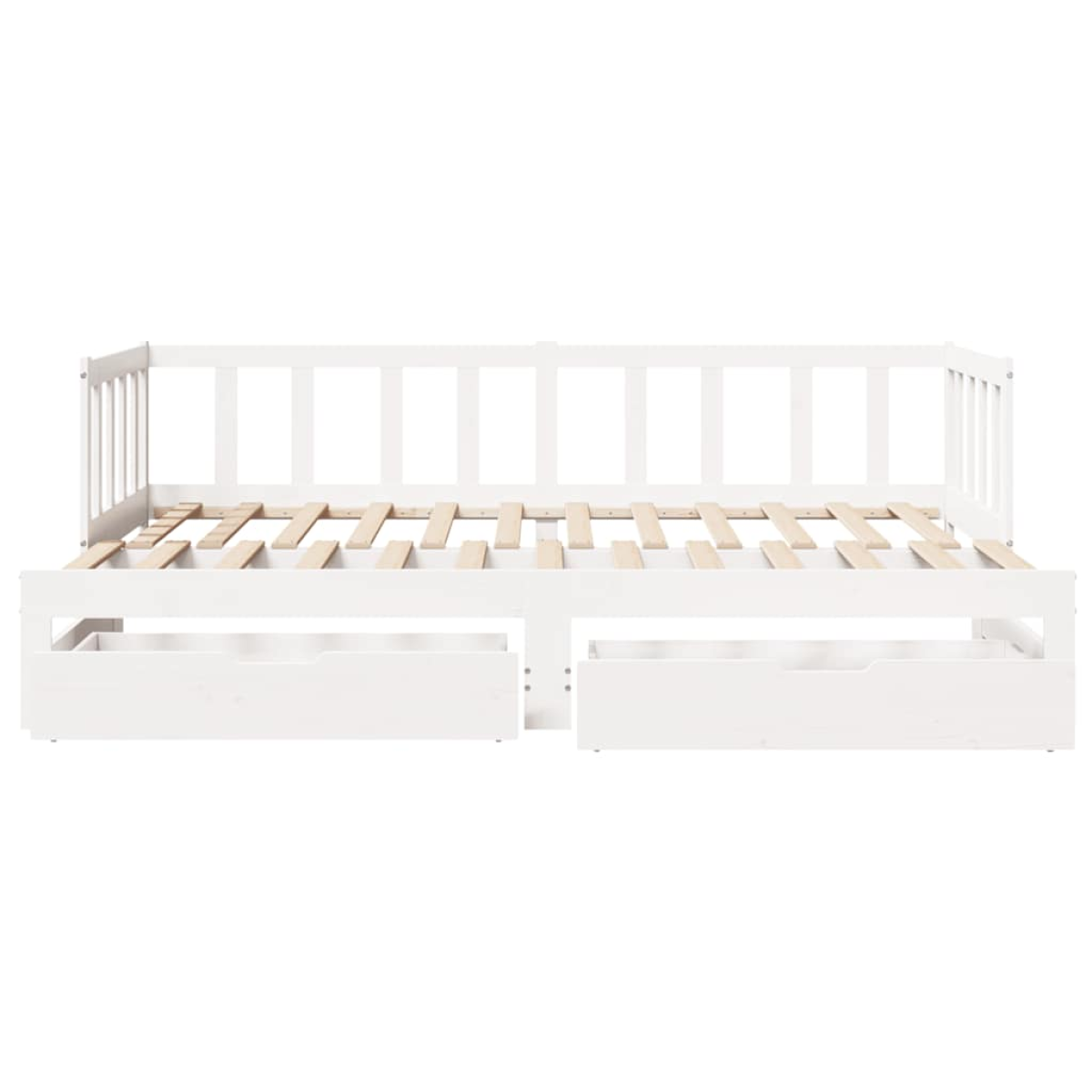 This 2-in-1 daybed with trundle, serving as both a sofa and bed, makes a practical and eye-catching addition to your living room or bedroom. Stable and long-lasting frame: Solid pinewood is known for its strength and durability. Its straight grains and distinctive knots contribute to its rustic charm.Versatile daybed: The sofa bed functions as a sofa during the day and easily converts into a double bed at night by pulling out the trundle, providing a convenient solution for hosting guests and maximising space.Slats for optimal support: The couch bed is complete with slats to offer essential support and breathability to your mattress.Ample storage space: This guest bed has two drawers that provide ample space for storing your clothes, socks, toys, cushions, etc. Good to know:Mattresses are not included with this bed. We do offer a various selection of mattresses. You can check our shop for matching mattresses.