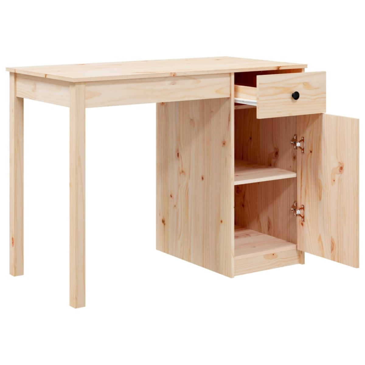 This stylish wooden desk, featuring a simple and practical design, is definitely meant to be the focal point of your room. Solid pine wood: Solid pine wood is a beautiful natural material. Pine wood has a straight grain, and the knots give the material its signature, rustic look. This office desk is made of solid wood for extra sturdiness and durability.Ample storage space: The study desk has 1 drawer and 1 cabinet, providing storage space for you to keep books, files or other essentials within reach.Spacious desktop: The desktop is ideal for placing your computer, keyboard and mouse or notebook to write or read comfortably.Wide applications: This standing desk can be used as a computer desk, writing desk and working table. It is suitable for study, office and any space decoration styles. Warning:In order to prevent overturning, this product must be used with the wall attachment device provided. Note:Each product comes with an assembly manual in the box for easy assembly.