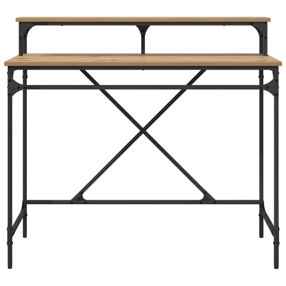 This Industrial Style Computer Desk is the perfect addition to any modern office with its sleek rectangular frame and contemporary aesthetic. Its industrial design, inspired by urban lofts, integrates seamlessly with modern or rustic decor. The smooth engineered wood surface offers a sophisticated look and provides ample space for writing, working on a laptop, or managing daily tasks, making it a vital piece for home or professional offices seeking both form and functionality. Smooth Engineered Wood Surface The desk's surface is crafted from engineered wood, offering a sturdy writing space while beautifully mimicking the look of natural wood. The texture is smooth to ensure comfort while writing or working, and it is treated to resist stains, making maintenance straightforward and convenient. Board Shelves for Storage Positioned beneath the desk, the board shelves provide essential storage without compromising the streamlined design. These engineered wood shelves are ideal for organizing documents, office supplies, or small gadgets, helping maintain a clean and uncluttered workspace. Steel Post Legs for Stability The desk features strong post legs made from steel, designed to offer maximum support and stability. Their cylindrical shape complements the industrial style while ensuring that the desk remains steady during use, providing a reliable work surface. Metal Frame Construction The robust metal frame supports the entire structure, integrating the legs and surface into a unified piece. This ensures long-lasting use, ideal for individuals seeking enduring quality without sacrificing modern style. Easy Maintenance &Assembly Assembly requires two people using a drill, though the provided wall attachment device ensures safety. Cleaning is as simple as wiping with a damp cloth, promoting effortless upkeep to keep the desk looking its best.