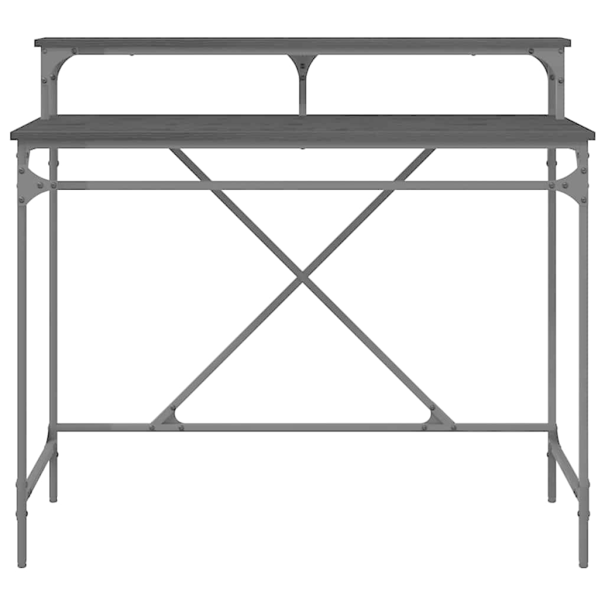 This Industrial Style Computer Desk is the perfect addition to any modern office with its sleek rectangular frame and contemporary aesthetic. Its industrial design, inspired by urban lofts, integrates seamlessly with modern or rustic decor. The smooth engineered wood surface offers a sophisticated look and provides ample space for writing, working on a laptop, or managing daily tasks, making it a vital piece for home or professional offices seeking both form and functionality. Smooth Engineered Wood Surface The desk's surface is crafted from engineered wood, offering a sturdy writing space while beautifully mimicking the look of natural wood. The texture is smooth to ensure comfort while writing or working, and it is treated to resist stains, making maintenance straightforward and convenient. Board Shelves for Storage Positioned beneath the desk, the board shelves provide essential storage without compromising the streamlined design. These engineered wood shelves are ideal for organizing documents, office supplies, or small gadgets, helping maintain a clean and uncluttered workspace. Steel Post Legs for Stability The desk features strong post legs made from steel, designed to offer maximum support and stability. Their cylindrical shape complements the industrial style while ensuring that the desk remains steady during use, providing a reliable work surface. Metal Frame Construction The robust metal frame supports the entire structure, integrating the legs and surface into a unified piece. This ensures long-lasting use, ideal for individuals seeking enduring quality without sacrificing modern style. Easy Maintenance &Assembly Assembly requires two people using a drill, though the provided wall attachment device ensures safety. Cleaning is as simple as wiping with a damp cloth, promoting effortless upkeep to keep the desk looking its best.