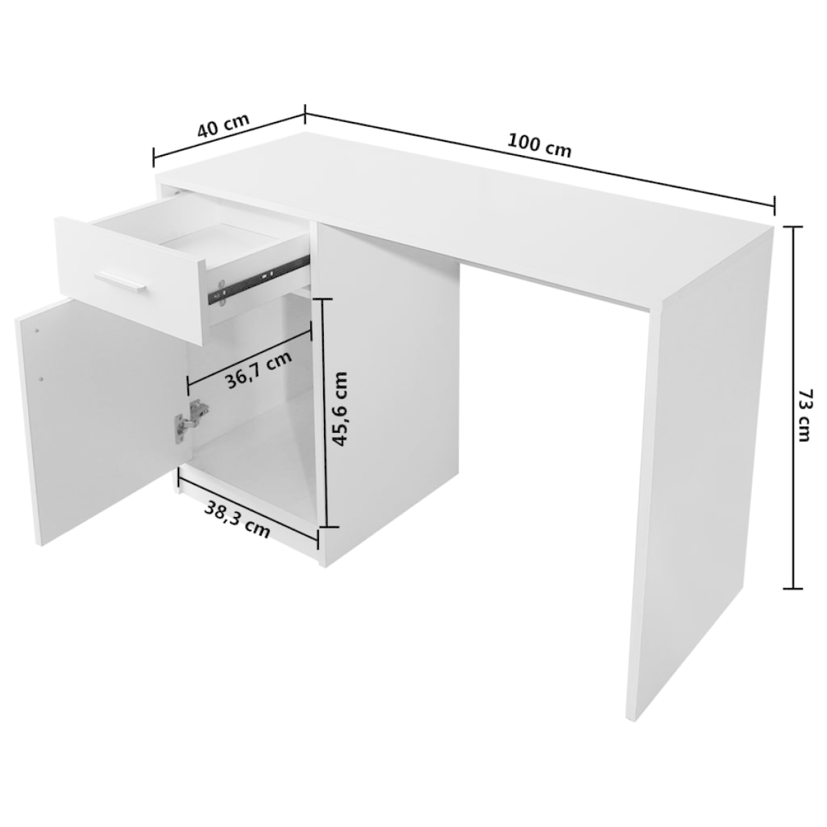 vidaXL Desk with Drawer and Cabinet White 100x40x73 cm
