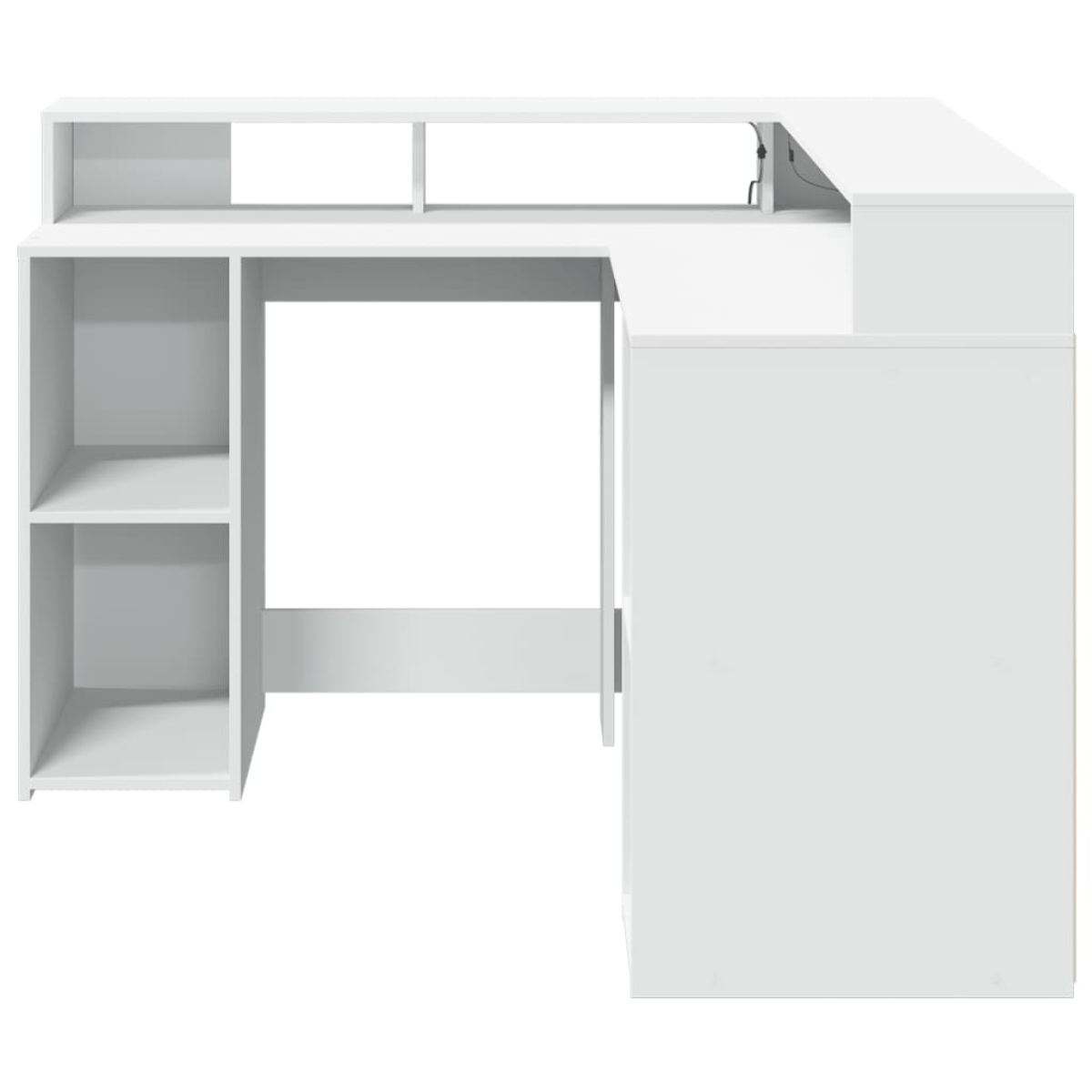 With ample storage, durable construction, and LED lighting options, this desk is perfect for creating an organised and stylish working or gaming space. Stable and durable material: Engineered wood is a durable and stable material with a smooth surface that is resistant to moisture, warping, and splitting, making it a reliable choice for various projects.RGB LED lights for a pleasant ambience: This desk features LED lights that can be easily adjusted to create a personalised light show. You can customise the modes, colours, and brightness to enhance the ambience of your interior space.Ample storage: The desk includes open compartments and shelves, offering extensive storage options for all your office essentials and helping to keep your workspace organized and clutter-free.Compact and space-saving: Its unique L-shaped design offers a compact footprint, making it ideal for fitting into corners.Easy maintenance: Thanks to its smooth surface, the LED desk is easy to clean with a dry and soft cloth and requires less maintenance. Please disconnect the product from the power supply or turn off the power supply when cleaning and when not in use. Warning:To prevent it from tipping over, this product must be used with the provided wall attachment device. Good to know:Screws and plugs for inside the wall are not included. We advise you to find and use screws and plugs suitable specifically for your walls. If you're not sure, you can consult with a professional. Please read and follow each step of the instructions.The product has a USB connector that requires a certified 5V USB power source (not included).