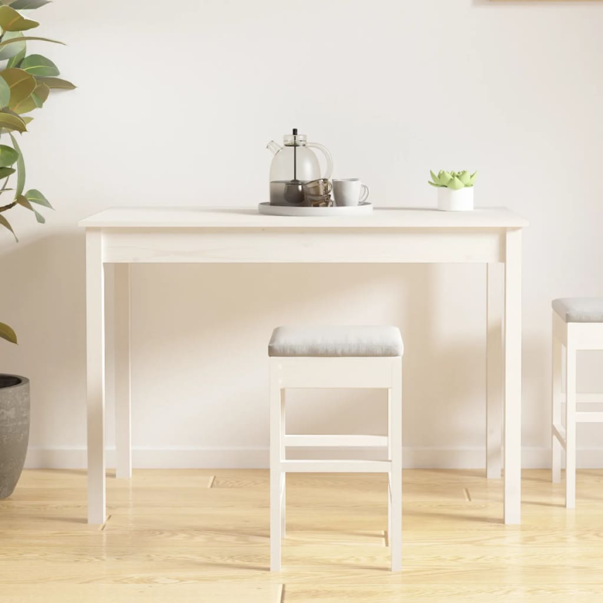 Add a touch of minimalist style and elegant charm to your kitchen and dining room with this classic wooden dining table! Solid pine wood: Solid pine wood is a beautiful natural material. Pine wood has a straight grain, and the knots give the material its signature, rustic look.Stable frame: The wooden frame ensures sturdiness and stability.Sturdy tabletop: The tabletop is a perfect spot for placing snacks, drinks, vases, fruit bowls and your favourite decorative items.Multiple usage: This dining room table can also be used as a counter table and restaurant table to meet your different needs. Warning:In order to prevent overturning, this product must be used with the wall attachment device provided. Note:Each product comes with an assembly manual in the box for easy assembly.