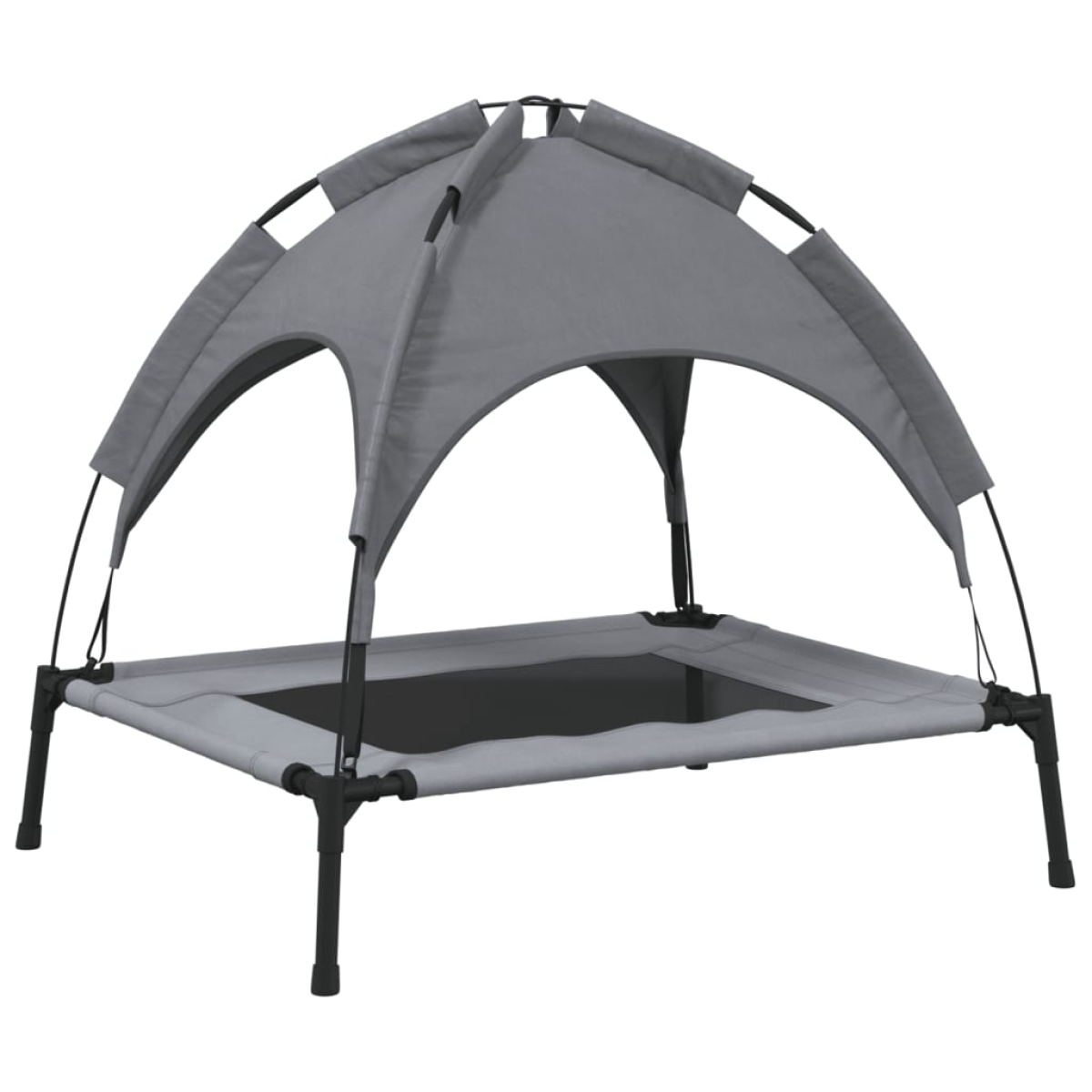 This dog bed with canopy is a comfortable and practical sleeping solution for your furry friend. Long-lasting and breathable material: The elevated dog bed is made of Oxford fabric and textilene, making it durable and suitable for daily outdoor use.Sturdy and stable frame: The powder-coated steel frame ensures the sturdiness and durability of the raised dog bed. The four non-slip rubber feet also add extra stability.Removable canopy: The dog couch bed comes with a removable canopy for full shade and protection.Elevated design: The dog bed keeps your dog out of dirt and moisture, providing a comfortable, dry sleeping surface.Wide applications: The dog bed cot is suitable for both indoor and outdoor use. It can be placed anywhere in the home, as well as on your porch, patio, or backyard.