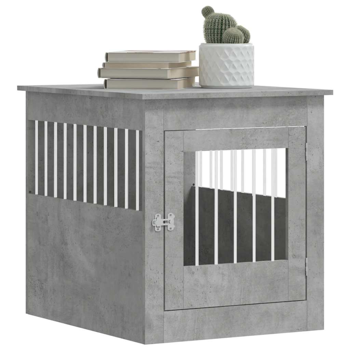 This dog crate furniture, serving as both a dog cage and an end table, makes a practical and eye-catching addition to your living room. Sturdy construction: The doghouse is made of steel wires and engineered wood, ensuring both safety and durability. The engineered wood is of exceptional quality with smooth surface and also features strength, stability and resistance to moisture.2-in-1 function: This dog kennel perfectly combines style and functions. It not only provides your furry friend with a cosy spot to nap but also doubles as an end table for you to place your favorite decorations.Ventilation design: The steel wire windows allow air to flow properly in the dog cage and prevent bad odours, creating a comfy sleeping environment for your dogs.Lockable door: This dog crate has a latched door for extra safety. Additionally, you can install the door either on the left side or right side based on your own needs.