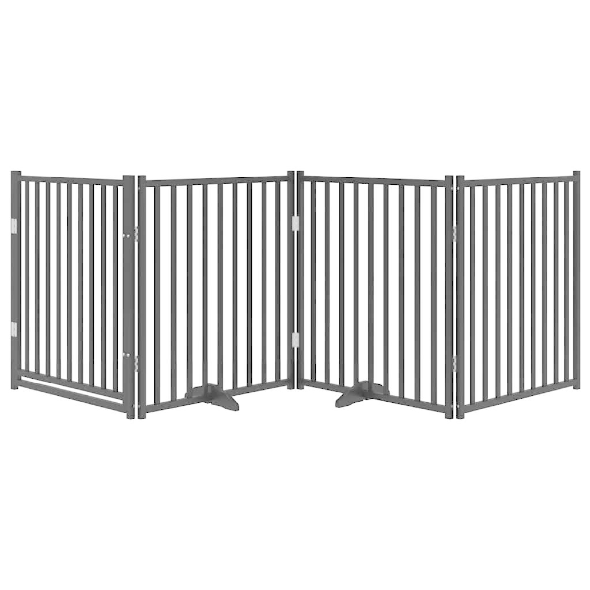 The dog gate puts your pet in a fixed activity area, which can keep your pet safe and prevent you from being disturbed.Durable material: The dog gate is made of solid fir wood with water-base paint, making it durable, long-lasting, and easy to clean.Easy to use: The dog gate does not require installation or drilling that doesn't damage your home. This dog gate can be totally foldable when without feet, making it easy to carry and store in the closet or somewhere else.Practical design: The dog gate features two sturdy feet, providing stability and allowing for easy adjustment. Additionally, it includes a door panel and is equipped with locks, providing enhanced security and convenience for both you and your pets.Multiple applications: This dog gate can effectively prevent your pets from jumping over and getting through. Therefore, it is perfect for keeping your pets safe in the living room, kitchen, stairs, and doorway.