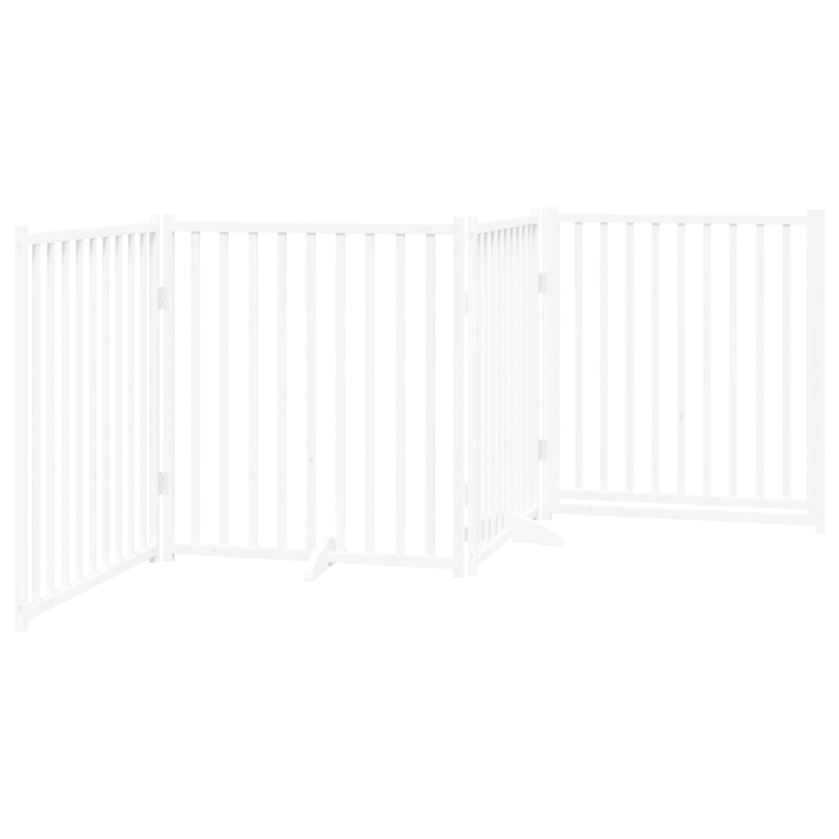 vidaXL Dog Gate with Door Foldable 4 Panels White 320 cm Solid Wood Fir