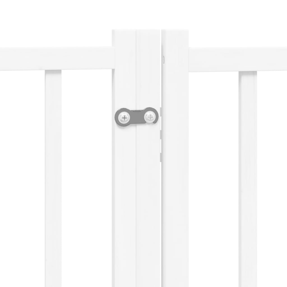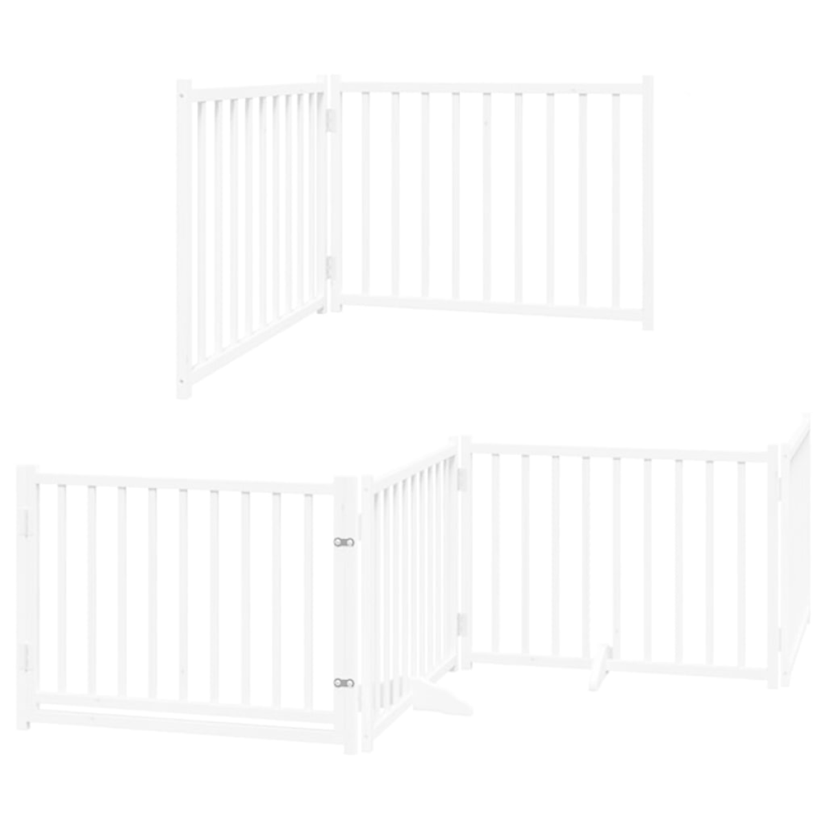 The dog gate puts your pet in a fixed activity area, which can keep your pet safe and prevent you from being disturbed. Durable material: The dog gate is made of poplar wood with water-base paint, making it durable, long-lasting, and easy to clean. Easy to use: The dog gate does not require installation or drilling that doesn't damage your home. This dog gate can be totally foldable when without feet, making it easy to carry and store in the closet or somewhere else. Practical design: The dog gate features two sturdy feet, providing stability and allowing for easy adjustments. Additionally, it includes a door panel and is equipped with locks, providing enhanced security and convenience for both you and your pets. Multiple applications: This dog gate can effectively prevent your pets from jumping over and getting through. Therefore, it is perfect for keeping your pets safe in the living room, kitchen, stairs, and doorway.