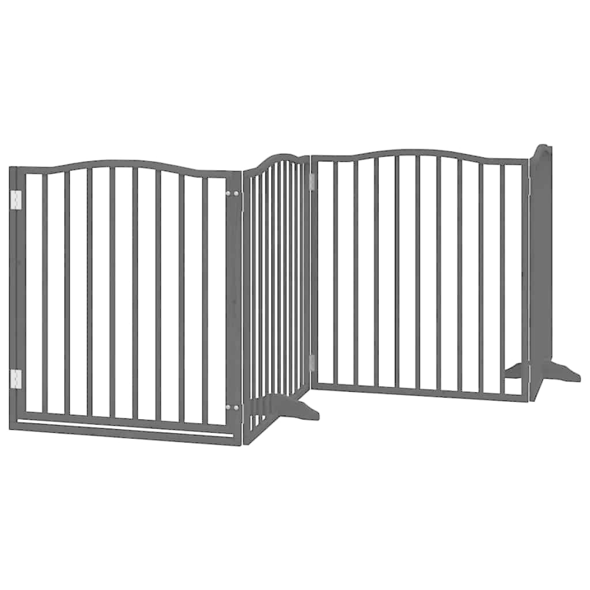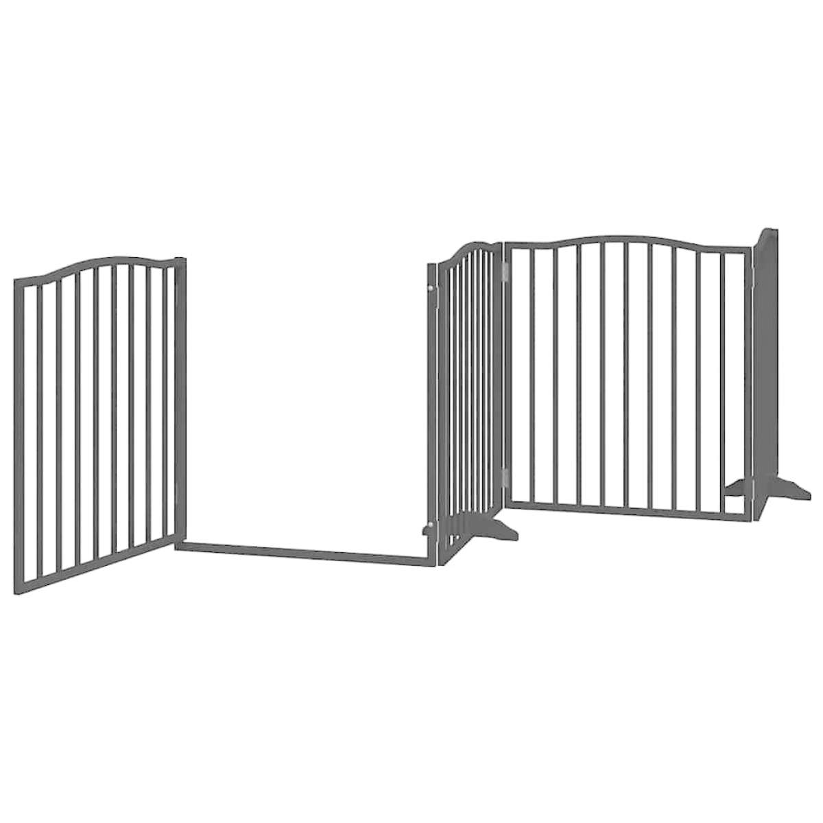 The dog gate puts your pet in a fixed activity area, which can keep your pet safe and prevent you from being disturbed. Durable material: The dog gate is made of poplar wood with water-base paint, making it durable, long-lasting, and easy to clean.Easy to use: The dog gate does not require installation or drilling that doesn't damage your home. This dog gate can be totally foldable when without feet, making it easy to carry and store in the closet or somewhere else.Practical design: The dog gate features two sturdy feet, providing stability and allowing for easy adjustments. Additionally, it includes a door panel and is equipped with locks, providing enhanced security and convenience for both you and your pets.Multiple applications: This dog gate can effectively prevent your pets from jumping over and getting through. Therefore, it is perfect for keeping your pets safe in the living room, kitchen, stairs, and doorway.