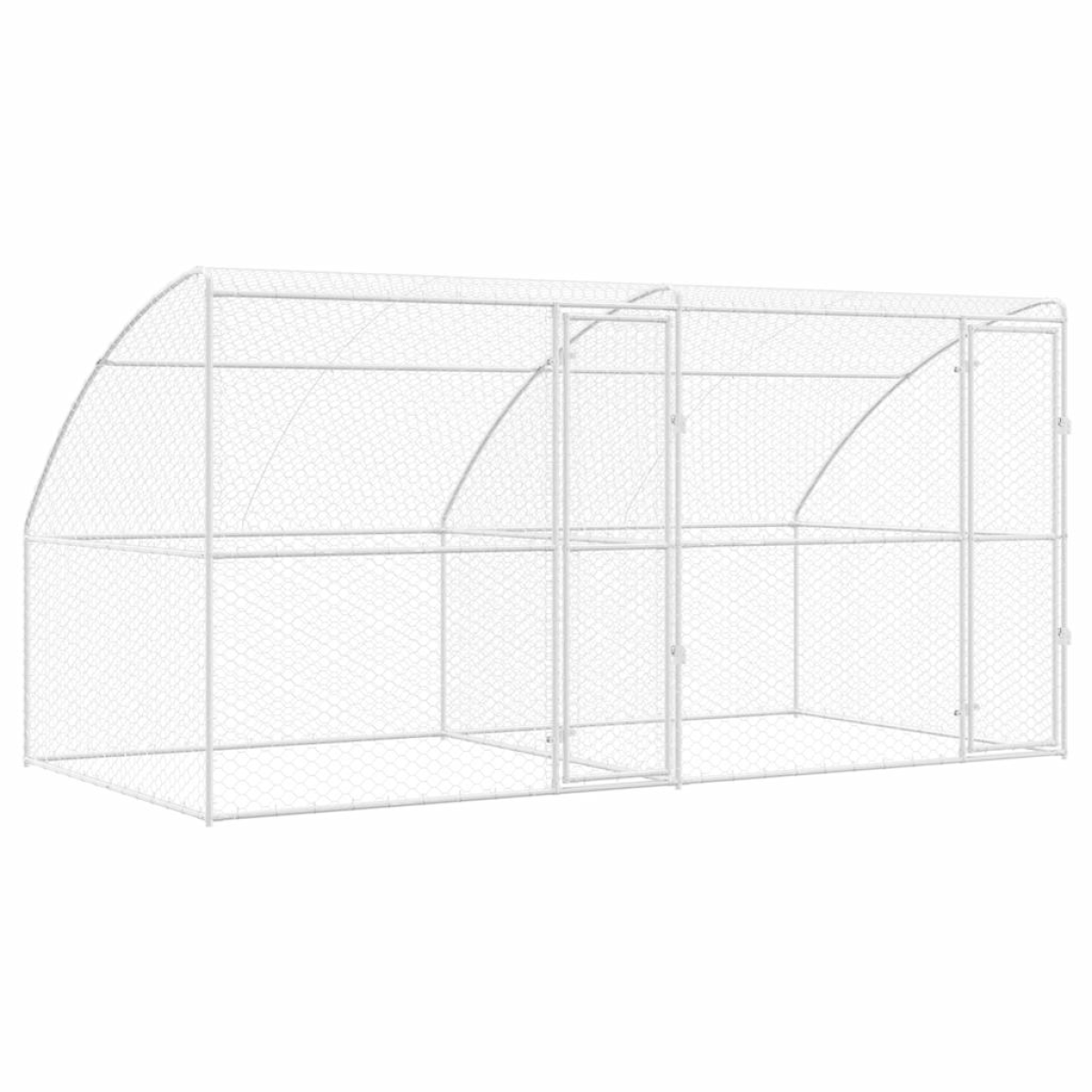 This durable dog kennel caters to the needs of every dog owner seeking a stylish and functional space for their furry companions. Crafted from galvanized steel, this kennel offers a smooth texture and an attractive silver hue that complements any garden or terrace setting. Perfect for outdoor use, it provides security and comfort for dogs, creating an ideal environment where they can rest and play freely. Designed to be both practical and safe, it's a thoughtful addition to any pet-friendly home, ensuring your pet remains protected and comfortable. Durable Galvanized Steel: Crafted from robust galvanized steel, this kennel stands firm against the elements. Its weather-resistance ensures longevity, reducing wear and tear even in harsh outdoor conditions. Ideal for those who value equipment that lasts, the kennel's structure provides an unwavering sanctuary for pets, combining practical strength with aesthetically pleasing simplicity. Mesh Roof with Ventilation: Featuring a mesh roof that promotes excellent airflow, this dog kennel ensures your pet enjoys fresh air without compromising security. The open-air design makes it agreeable for any season, providing comfort and freshness. This feature is especially beneficial in warmer months, preventing overheating while allowing your canine's environment to stay breezy and refreshing. Ergonomic Lockable Latch: Peace of mind comes with the lockable latch system, offering enhanced security for your pet. Value lies in its ease of use; with a simple twist, owners can feel assured of their pet's safety. This security feature substantially mitigates the risk of unintentional escapes, thus giving dog owners more control over their pet's constraints. Effortless Assembly: Assembly requires two people and a screwdriver, making the process straightforward. This ready-to-use design eliminates any need for complex tools or procedures, allowing pet owners to set up quickly and efficiently. Fast setup means pets can enjoy their new space without unnecessary delays. Outdoor Design Versatility: Tailored for dynamic garden and terrace spaces, the kennel naturally fits into various outdoor aesthetics. The sleek, unobtrusive color blends into natural surroundings, adding a layer of sophistication to outdoor settings. This makes it a perfect choice for those seeking both form and function in their pet care equipment.