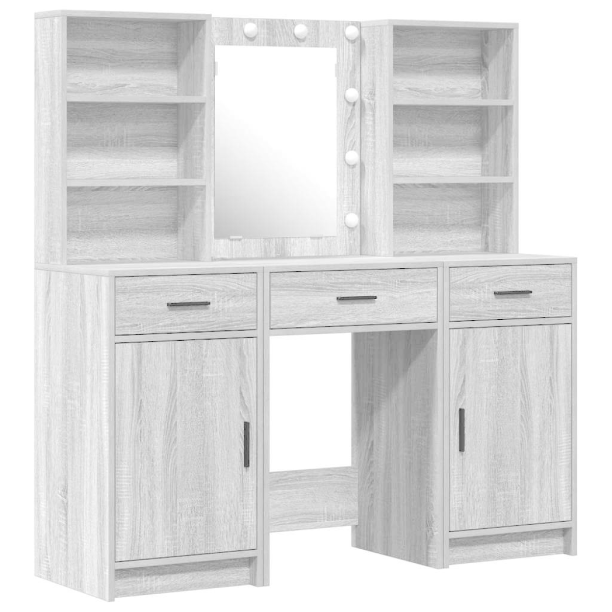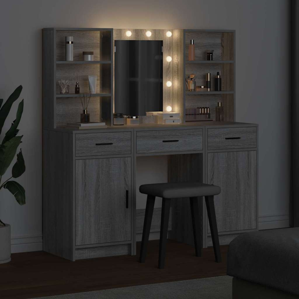 This Dressing Table Set showcases modern design with its sleek lines and handy features. Made from engineered wood, it has a smooth and textured finish that blends right in with contemporary decor. Perfect for personal grooming and keeping things organised, it turns any bedroom into a stylish and practical space. Materials: The whole set is built from engineered wood, which is known for its smooth finish and durability. This means the table is both strong and easy to look after, offering a lovely mix of style and practicality. With an elegant finish, it looks fresh and is easy to wipe clean with a damp cloth. Included Components: The set has a big LED mirror with a touch-activated light switch, giving you great lighting for makeup and styling. The board shelves, also made from engineered wood, are ideal for storing cosmetics and personal items, while hinged doors and drawers provide plenty of space for all your bits and bobs. Features / Function / Design: Made for modern bedrooms, this set comes in a space-saving rectangular shape, topped off with an opaque finish. The LED strip lighting adds to its functionality while creating a warm atmosphere in the room. The touch activation makes it super user-friendly and improves the whole grooming experience. Recommended Uses: Perfect for bedrooms that want a stylish yet practical furniture set. Its compact size makes it a brilliant choice for smaller spaces, giving you everything you need for personal grooming and storage. Whether it’s for your daily routine or the odd touch-up, it works great as a chic vanity area. Care & Maintenance: To keep it looking fresh, just wipe it with a damp cloth. Regular cleaning helps keep the surfaces looking spotless and enhances the overall look and lifespan of the set. Be gentle with the touch-activated bits to keep them working well.