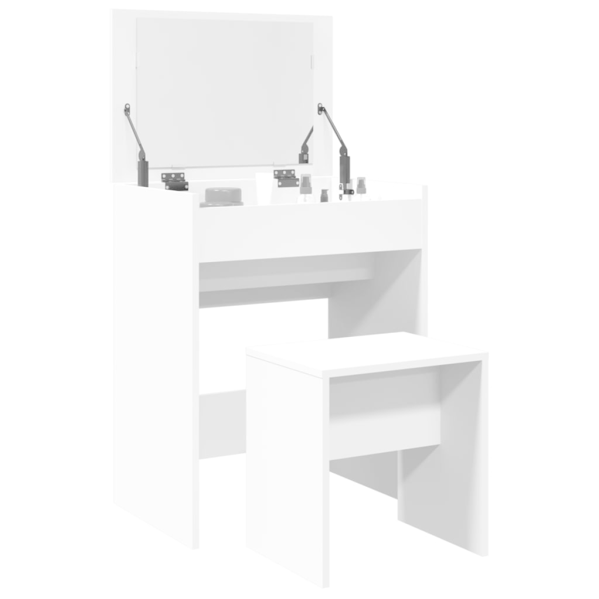 The dressing table is a great addition to your bedroom decor while keeping your cosmetics close at hand! Stable and durable material: Engineered wood is a durable and stable material with a smooth surface that is resistant to moisture, warping, and splitting, making it a reliable choice for a variety of projects.Ample storage space: The makeup table with 1 compartment offers ample storage space for keeping your various daily essentials well organised and within easy reach.Utility mirror: A beautiful mirror provides the view for makeup application and adds an elegant touch to the vanity desk. Warning:To prevent it from tipping over, this product must be used with the provided wall attachment device.