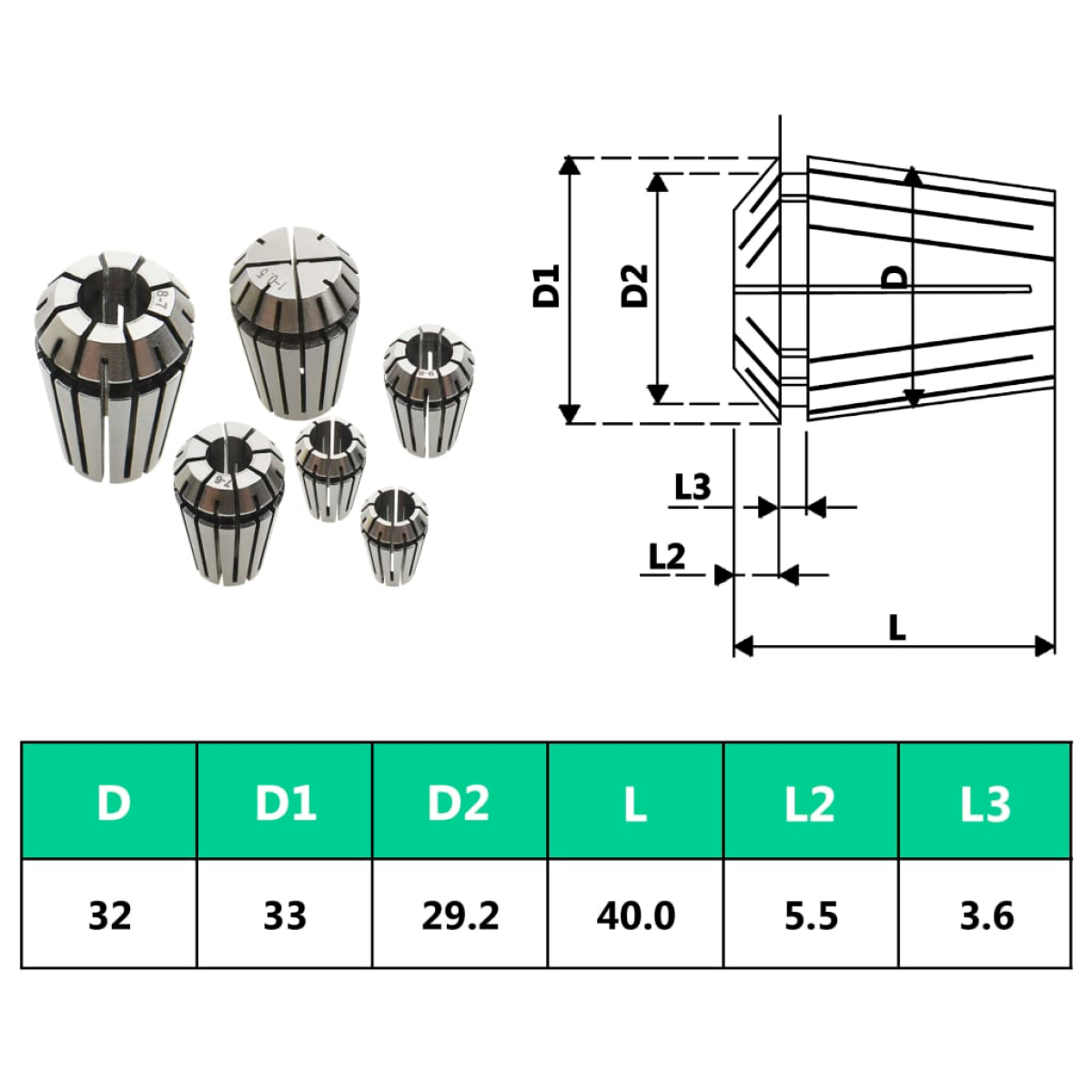 This 19 pcs ER32 collets are suitable for boring, milling, drilling, tapping, engraving, CNC, spindle machines and similar jobs. The set is with 2 mm to 20 mm griping range. These collets are made of high-quality steel, stable and practical in performance. It works with high precision, good elasticity and shock resistance. The set is built in self-release design and tools do not get stuck in the holder. Each collet is well packed in a separate protective container with a label. Also, each collet is marked with size, so it’s easy to identify them.