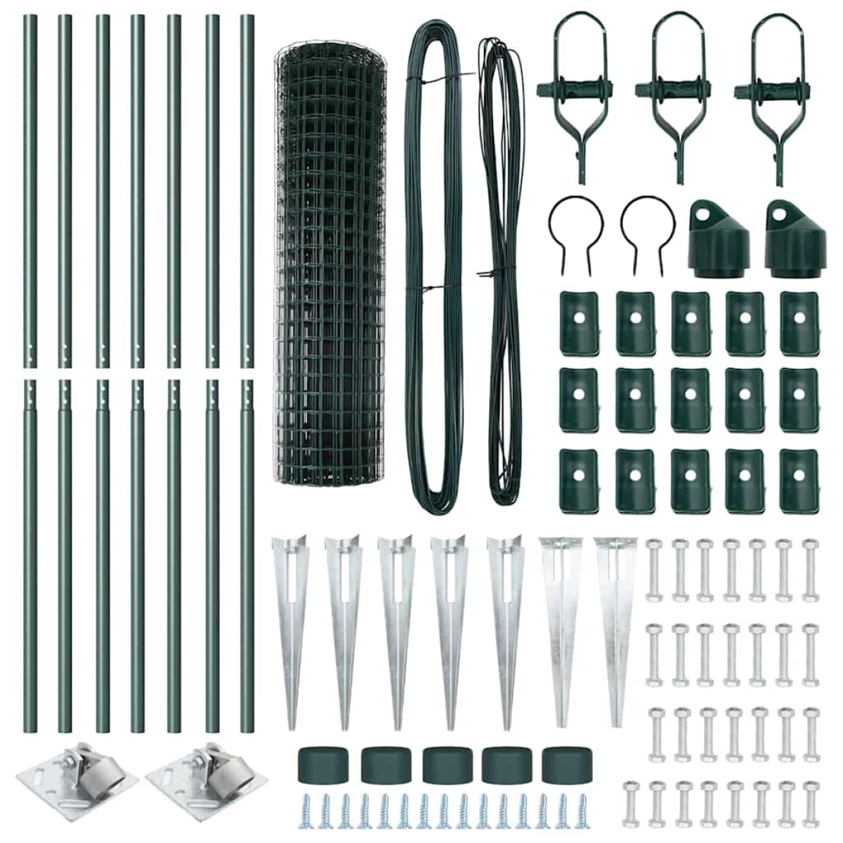 - Fence panels, posts, spike anchors, mesh roll