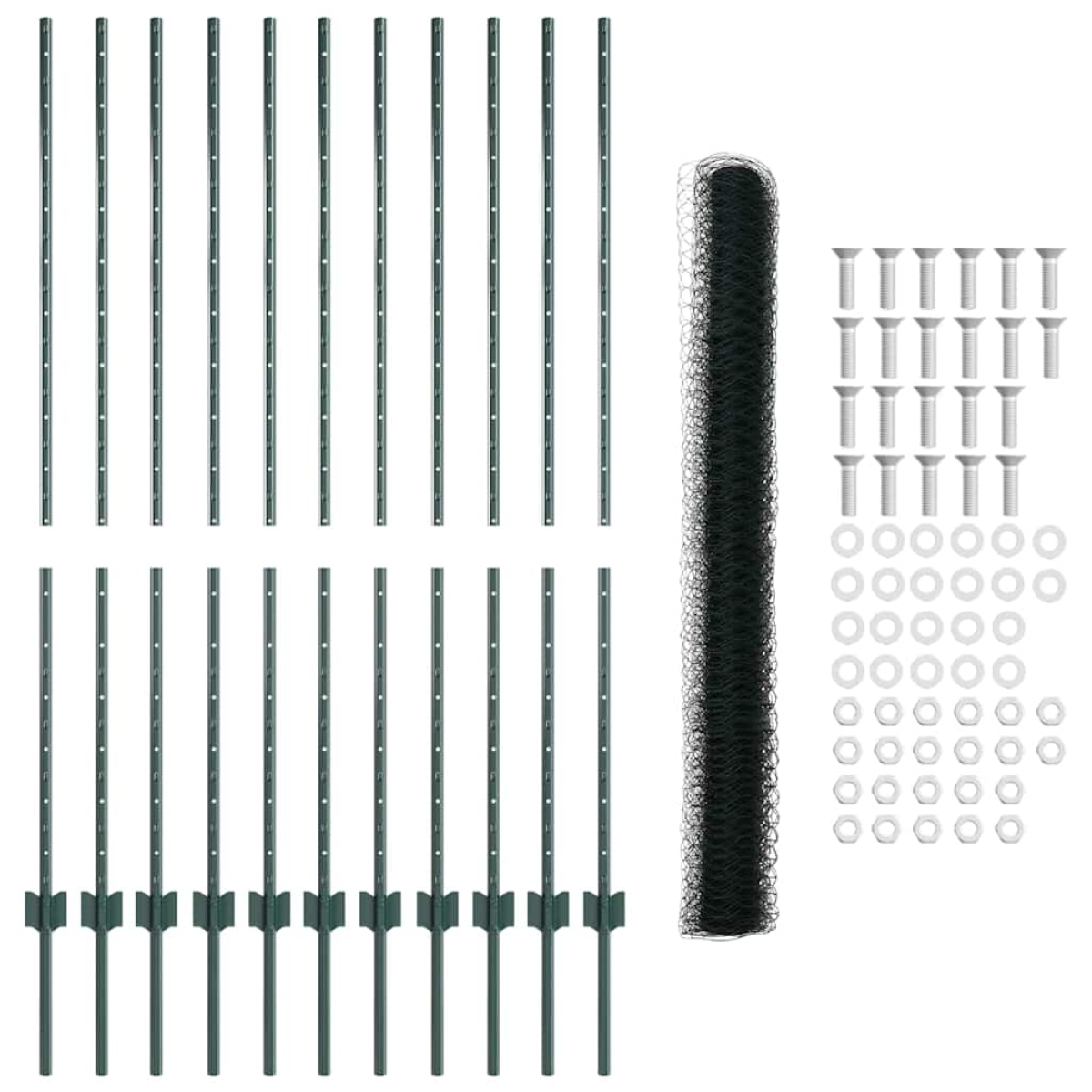 - 1 x Fence roll, 22 x Post, 1 x Set of screws and bolts