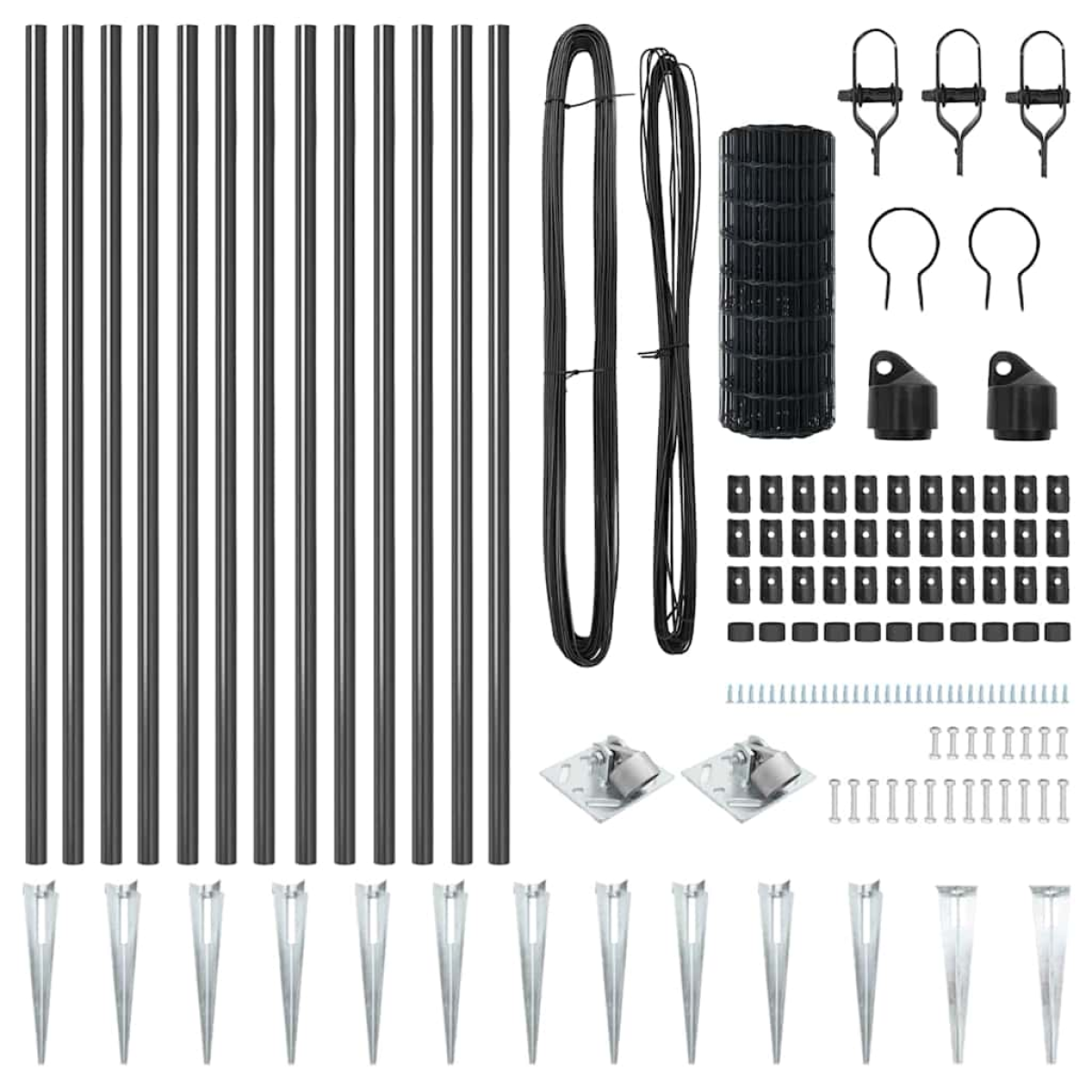 - Mesh roll, anchor spikes, ties