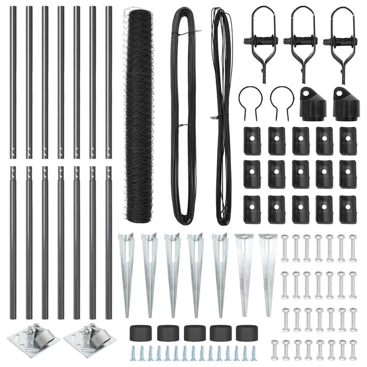 - Fence posts, Mesh roll, Spike anchors, Wire