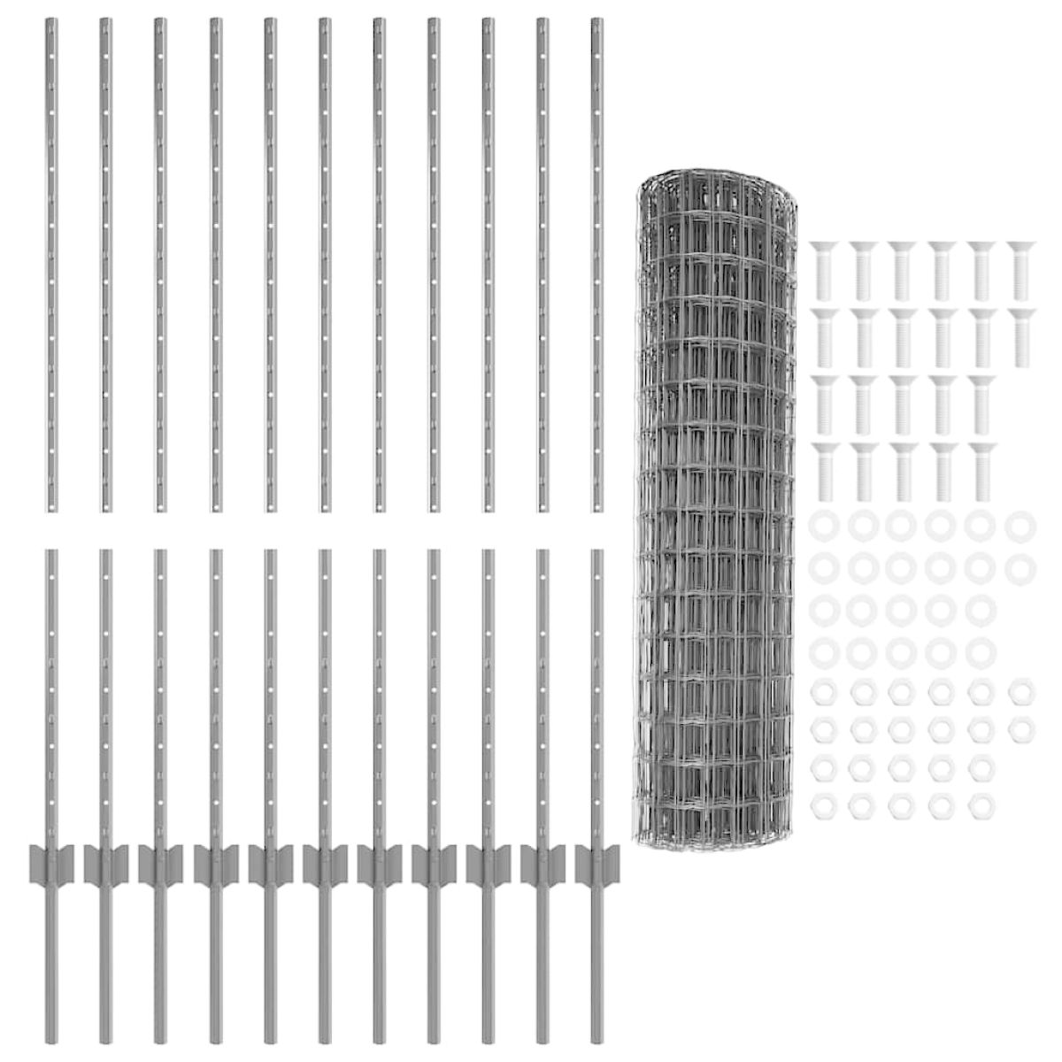 - 1 x Fence roll, 44 x Post, 1 x Set of screws and bolts