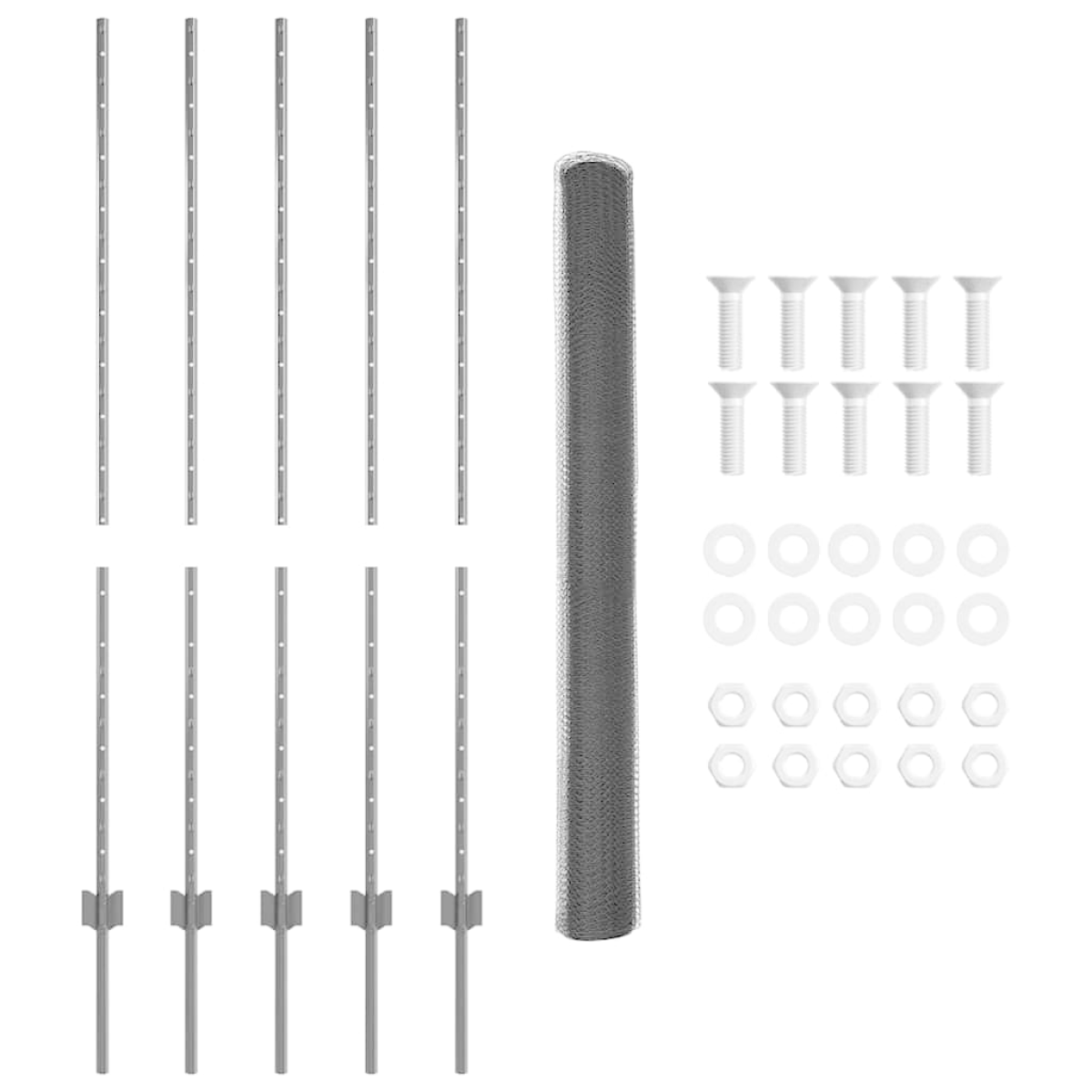 - 1 x Fence roll, 20 x Post, 1 x Set of screws and bolts