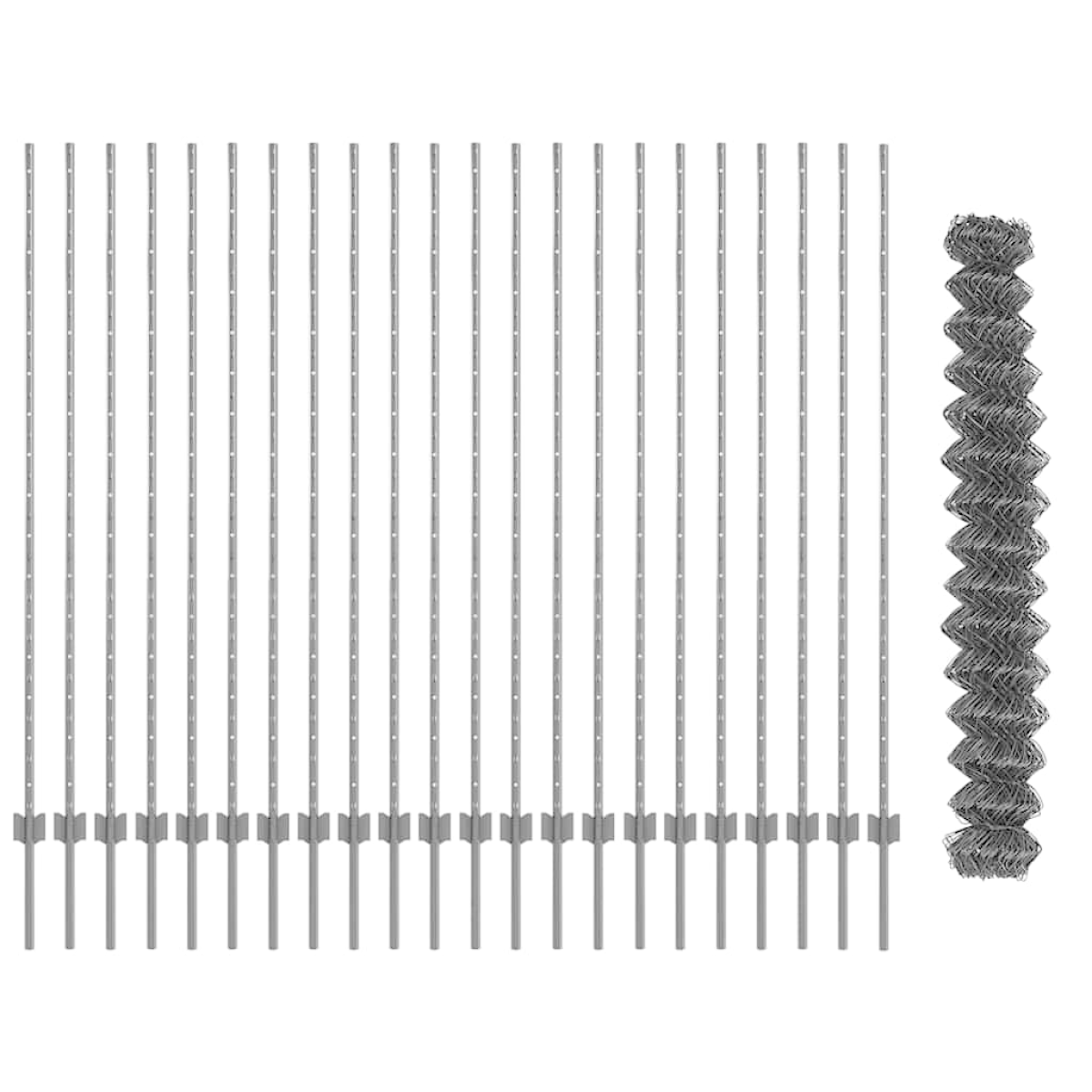 - 1 x Fence roll, 88 x Post, 1 x Set of screws and bolts