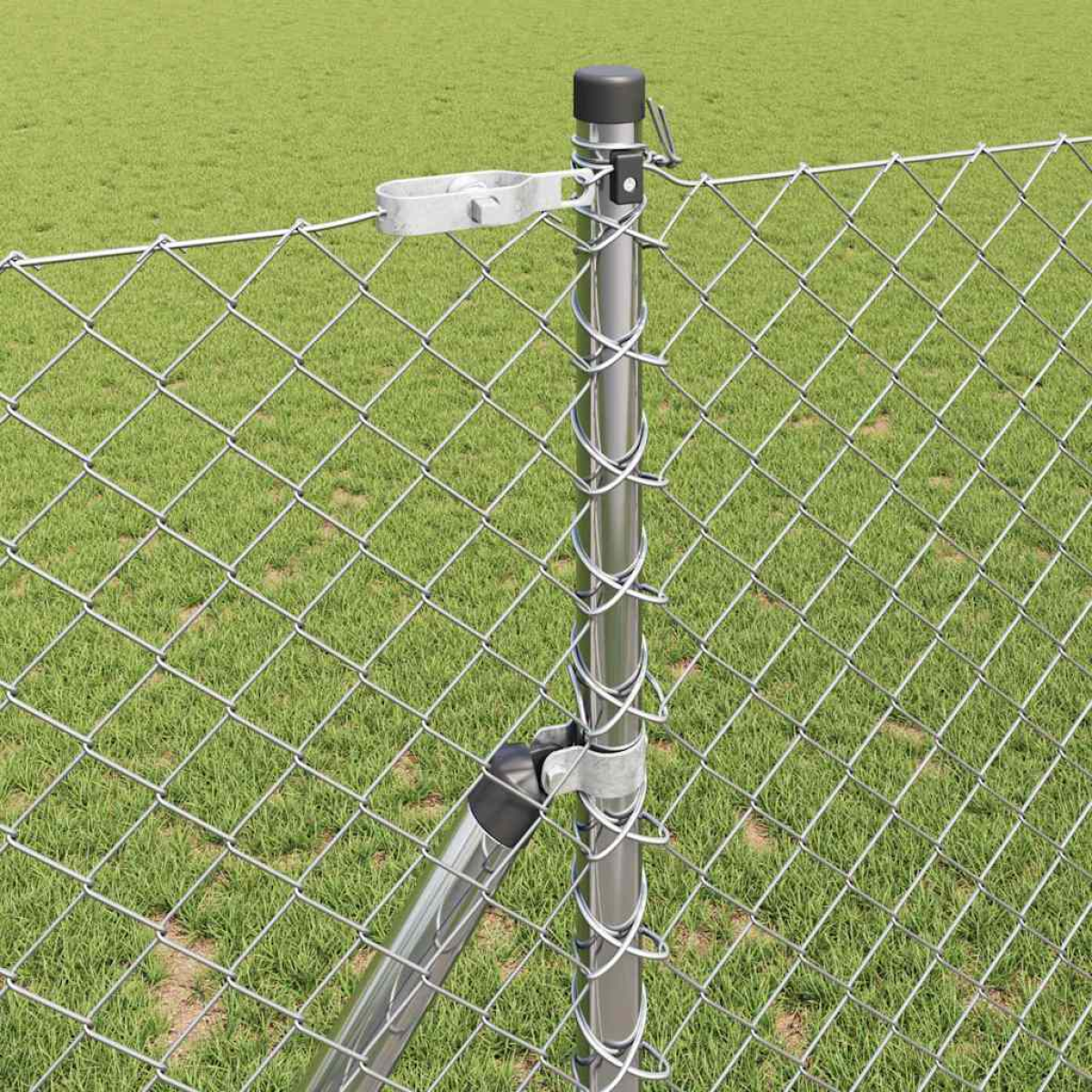 - 1 x Chain link fence, 5 x Post, 2 x Angle post, 5 x Plastic cap, 15 x Plastic tension wire supporter, 2 x Angle post cap, 2 x Angle post Hardware, 3 x Tensioner, 1 x 25m Binding wire, 1 x 33m Tension wire