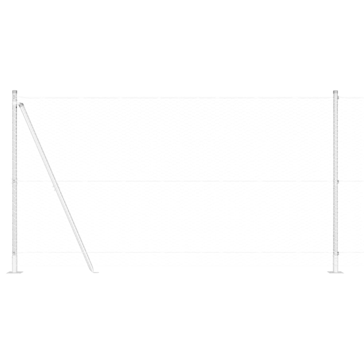 - 1 x Fence roll, 11 x Post, 2 x Angle post, 11 x Base plate, 11 x Plastic cap, 33 x Plastic tension wire supporter, 2 x Angle post cap, 2 x Angle post hardware, 3 x Tensioner, 1 x 25 m Binding wire, 1 x 80 m Tension wire