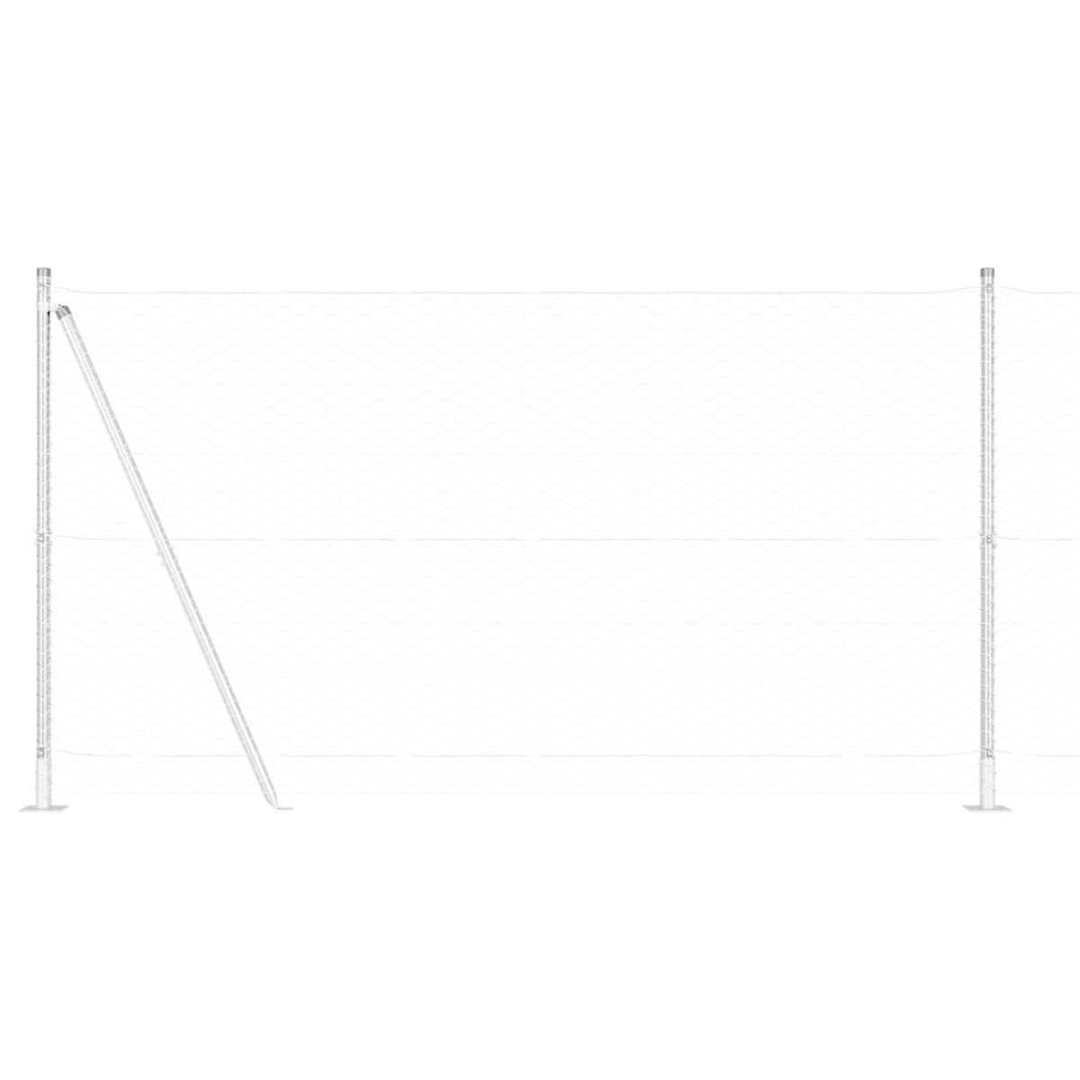 - 1 x Fence roll, 11 x Post, 2 x Angle post, 11 x Base plate, 11 x Plastic cap, 33 x Plastic tension wire supporter, 2 x Angle post cap, 2 x Angle post hardware, 3 x Tensioner, 1 x 25 m Binding wire, 1 x 80 m Tension wire