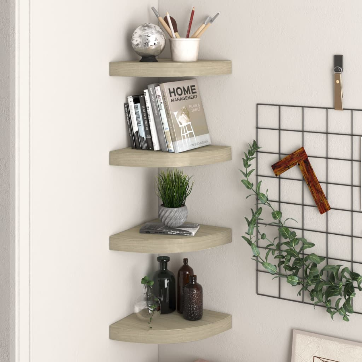 vidaXL Floating Corner Shelves 4 pcs Oak 25x25x3.8 cm MDF