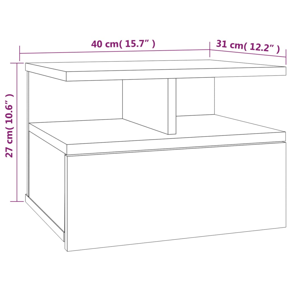 This compact floating nightstand, featuring space-saving, will offer an ideal storage solution in any living space. Sturdy material: The engineered wood is of exceptional quality with smooth surface and also features strength, stability and resistance to moisture.Ample storage space: The wall-mounted nightstand offers storage space for keeping your magazines, books, multimedia devices and other decorative items well-organised and within reach.Space-saving design: Thanks to its wall-mounted design, this compact bedside cabinet is a wonderful storage solution for a small room without losing floor space. Note:Each product comes with an assembly manual in the box for easy assembly.Screw(s) and plug(s) for inside the wall are not included. Seek and use screw(s) and plug(s) suitable for your walls. If you are uncertain, seek professional advice. Read and follow each step of the instruction carefully.