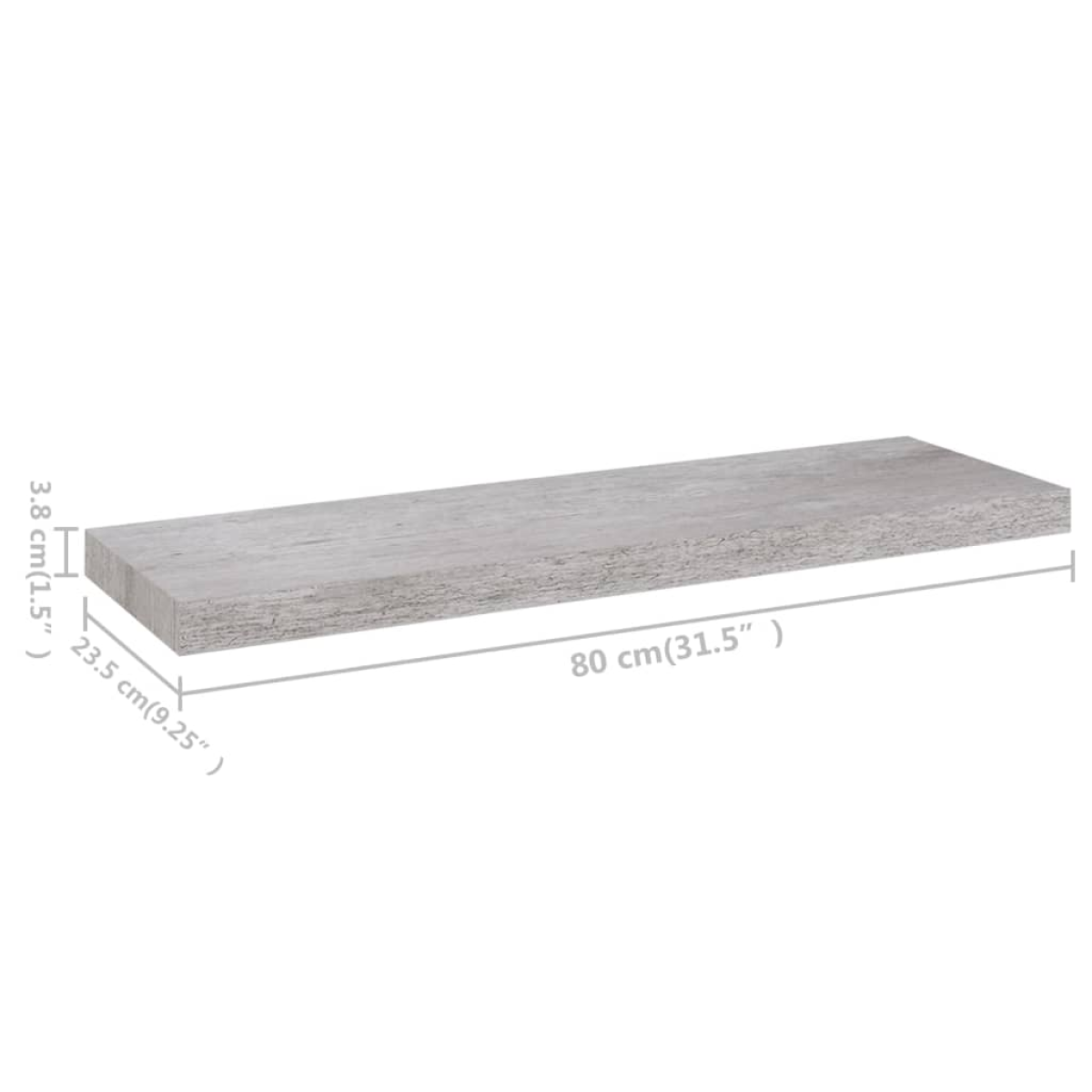 vidaXL Floating Wall Shelves 2 pcs Concrete Grey 80x23.5x3.8 cm MDF