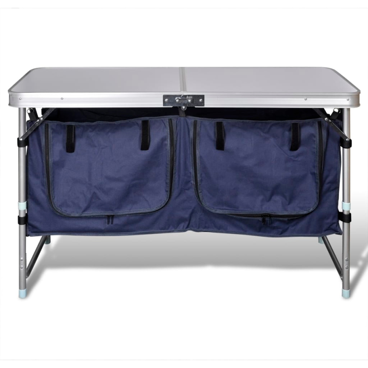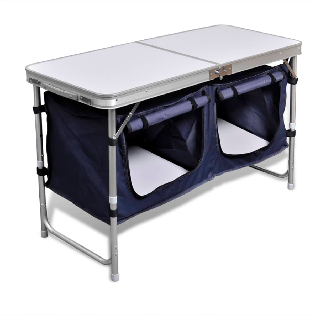This foldable camping cupboard features a wide work surface and 2 storage compartments. It is perfect for outdoor use. It has a wide work surface and 2 storage compartments, which provides you enough room so that you can have everything you need within reach. The zippered door of the cupboard can be rolled up and down easily, which protects your ingredients or kitchen ware from dirt. The camping cupboard is light in weight. Thanks to the folding design, it is easy to transport and can be stored away quickly when not in use. The carrying handle makes it very easy to bring the cupboard with you when going out to have a picnic or camping trip. Thanks to the sturdy structure, this camping cupboard has a high load capacity up to 30 - 50 kg. Thanks to the metal frame, the robust MDF tabletop and the high-quality 600D oxford fabric, it is highly stable and durable. And the PVC coating also ensures the camping cupboard a long service life.