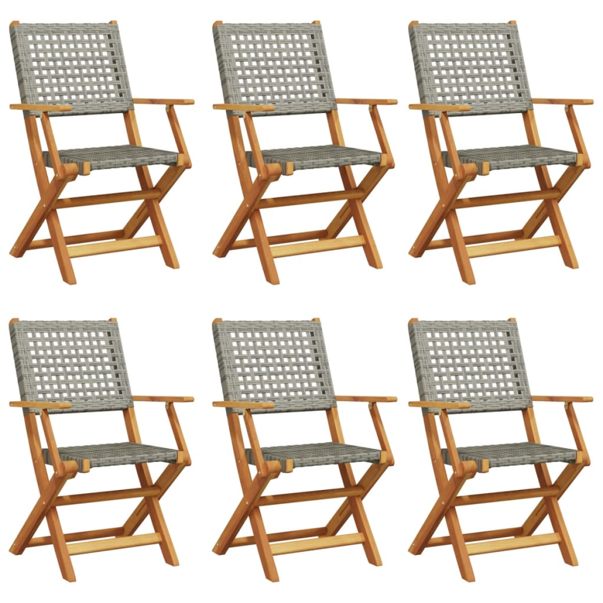 vidaXL Folding Garden Chairs 6 pcs Grey Poly Rattan and Solid Wood