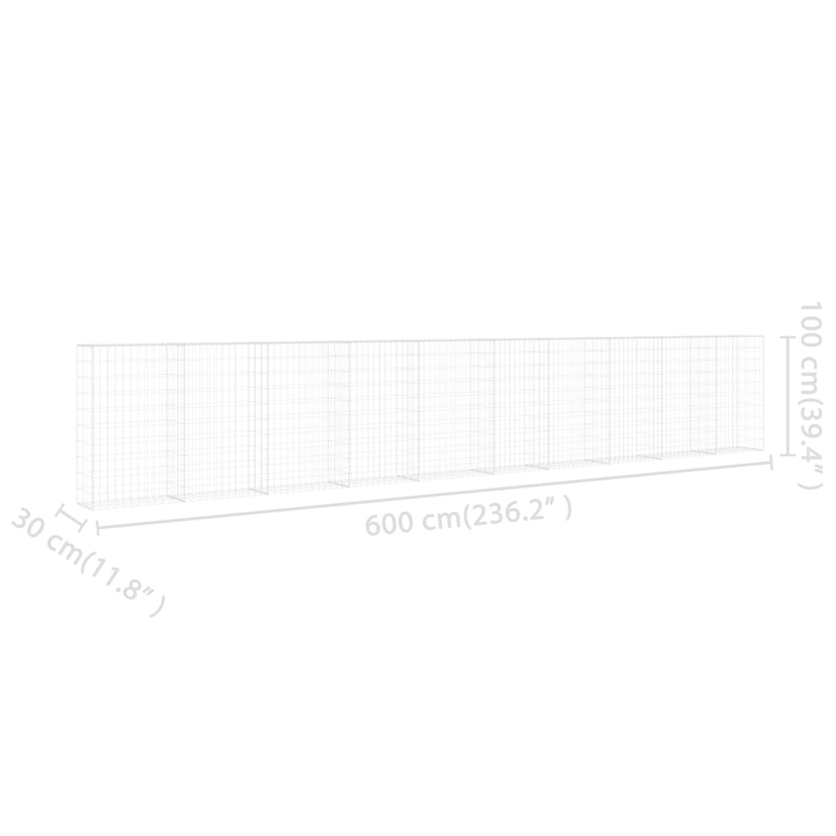 vidaXL Gabion Wall with Covers Galvanised Steel 600x30x100 cm
