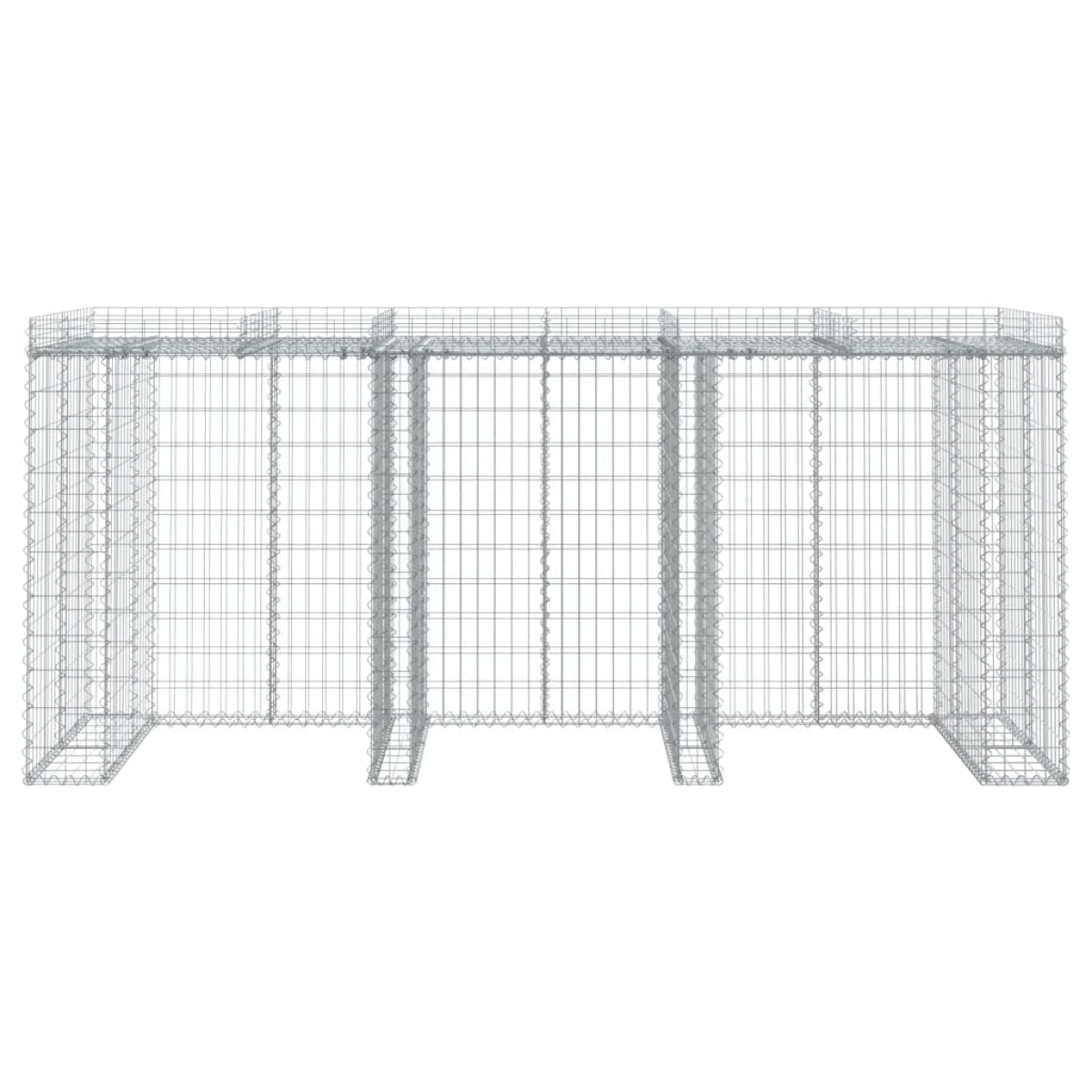 This gabion wall for garbage bin is a great choice to contain your garbage bin in your garden or patio. Durable material: It is made of corrosion-resistant galvanised iron for stability and durability, and with a sturdy gabion wire diameter of 3,5 mm, the gabion wall will surely adorn your garden in every season. Stable construction: The gabion basket is designed to be filled with rocks or gravel for stable construction. Multifunctional design: This gabion can not only accommodate 3 bins, but its top is also suitable for growing flowers and plants, adding a bright decoration to your garden. Strengthened gabion hooks: Included strengthened gabion hooks connect the opposing wire panels tightly together so that the stone cage retaining wall can keep its shape even when filled with rock or other materials. Convenient use: After the assembly is complete, all you need to do is fill the gabion wall basket with stones for immediate use. It can be filled with natural materials such as concrete, sandstone and coloured stone. Good to know:To make assembly as easy as possible, each product is delivered with a manual. The stones are not included in the delivery.