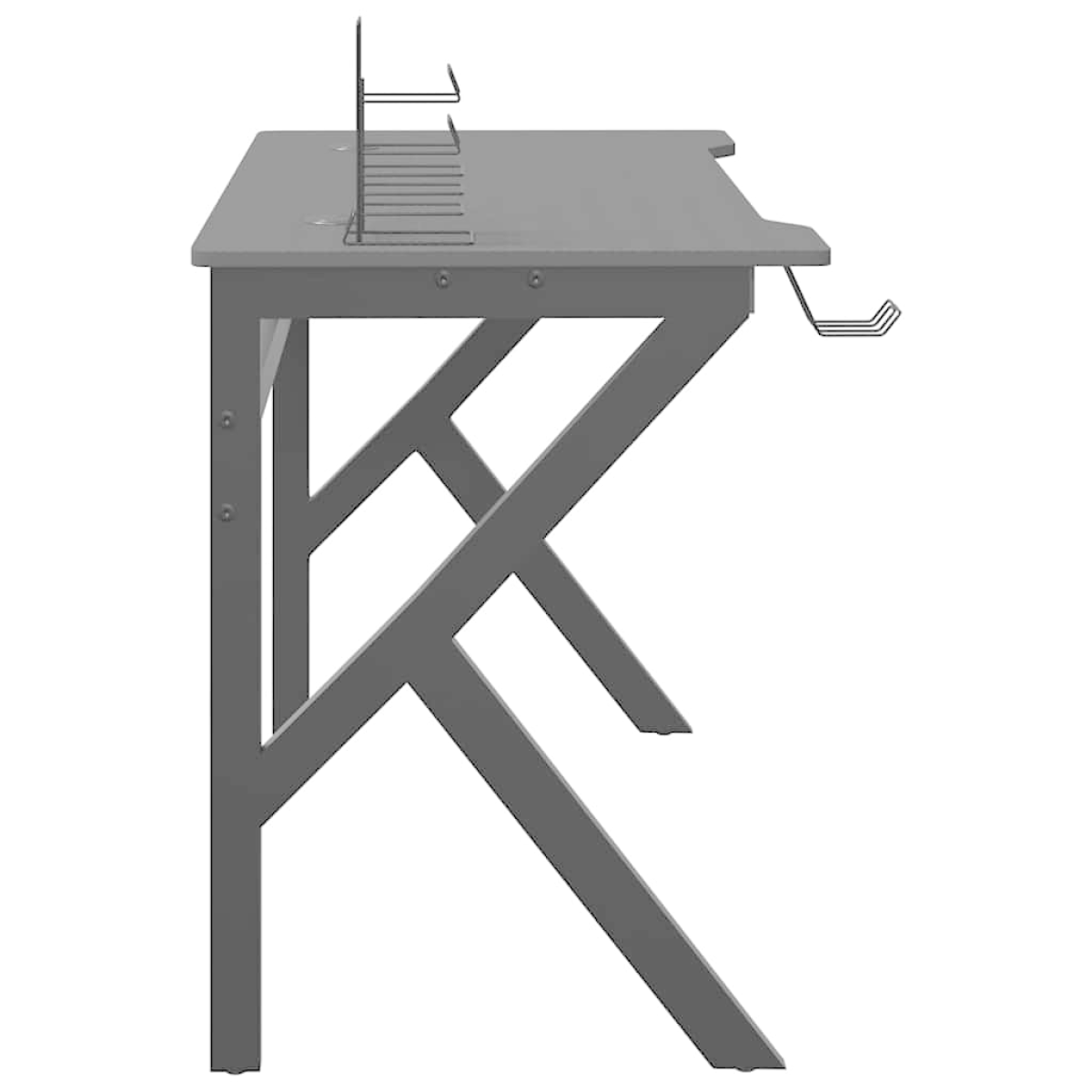 This gaming desk is a piece of furniture that makes you more comfortable and convenient when playing games! Enhanced comfort: Experience ultimate comfort and focus with the ergonomic design of this computer desk, ensuring perfect posture for extended gaming or work sessions.Convenient features: The PC gaming desk includes a built-in earphone rack and controller rack for effortless organization, plus a durable cup holder to keep your drinks secure and easily accessible during gaming sessions.Spacious design: This gaming table provides ample room for your gaming monitors, PC, keyboard, and other accessories, giving you a clean, organized setup.Durable & stable: Made with an engineered wood desktop and K-shaped iron legs, this computer table provides exceptional stability to withstand the demands of intense gaming sessions.Stylish & functional: The sleek black finish and streamlined design add a modern touch to any gaming room or office, blending style with practicality.