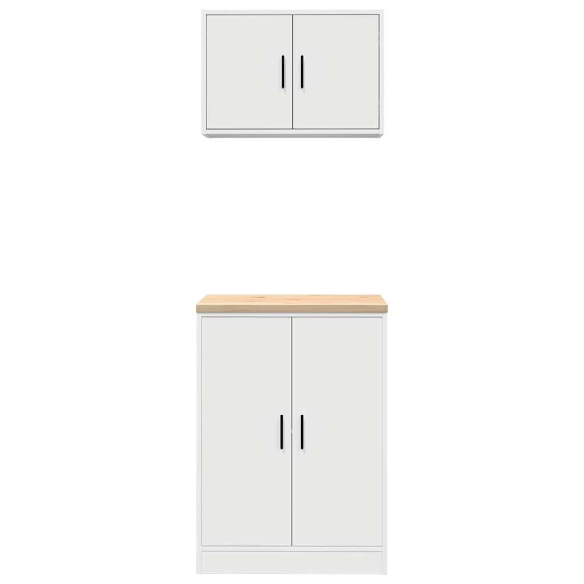These garage cabinets are an excellent choice for organising all your DIY tools and materials in the garage, storage room, or workshop. Durable and long-lasting: This garage cabinet is made from durable pinewood and engineered wood, ensuring stability and sturdiness for long-lasting use.Ample storage space: This tool cabinet allows you to keep your frequently used tools within easy reach, making it convenient to access everything you need for your next project.Versatile work surface: The wooden worktop provides a sturdy surface for various tasks, such as repairs, assembly, or DIY projects.Easy to maintain: Thanks to its smooth surface, the cabinet is easy to clean with a damp cloth and requires less maintenance.Wide applications: This garage storage cabinet provides plenty of secure space, making it ideal for organising items in various settings such as garages, offices, utility rooms, pantries, basements, or workshops.Flexible door installation: The door of the compartment can be installed on the left or right according to your personal habits and convenience. Good to know:Screws and plugs for inside the wall are not included. We advise to find and use screws and plugs suitable specifically for your walls. If you're not sure, you can consult with a professional. Please read and follow each step of the instructions. Warning:To prevent it from tipping over, this product must be used with the provided wall attachment device.