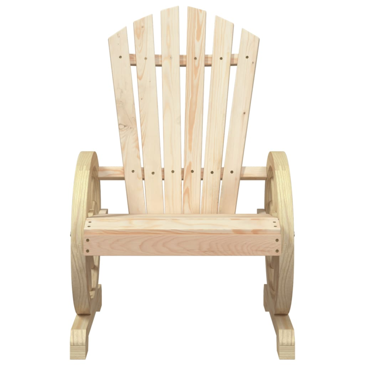These garden Adirondack chairs are perfect for those who want to enjoy the outdoors in style and comfort. Solid fir wood: Solid fir wood is a beautiful and durable material that maintains its integrity even when exposed to moisture. It does not dry out or warp, making it a reliable choice.Comfortable seating: The garden lounge chair features an ergonomic seat and angled backrest for optimal seating comfort. Additionally, the wagon-wheel shaped armrests provide comfortable space to rest your arms.Wide applications: The outdoor chair is a perfect seating solution in your gardens, backyards, lawns, decks, pool sides, balconies, and other outdoor living spaces. Good to know:To make sure your outdoor furniture stays beautiful, we recommend protecting it with a waterproof cover.
