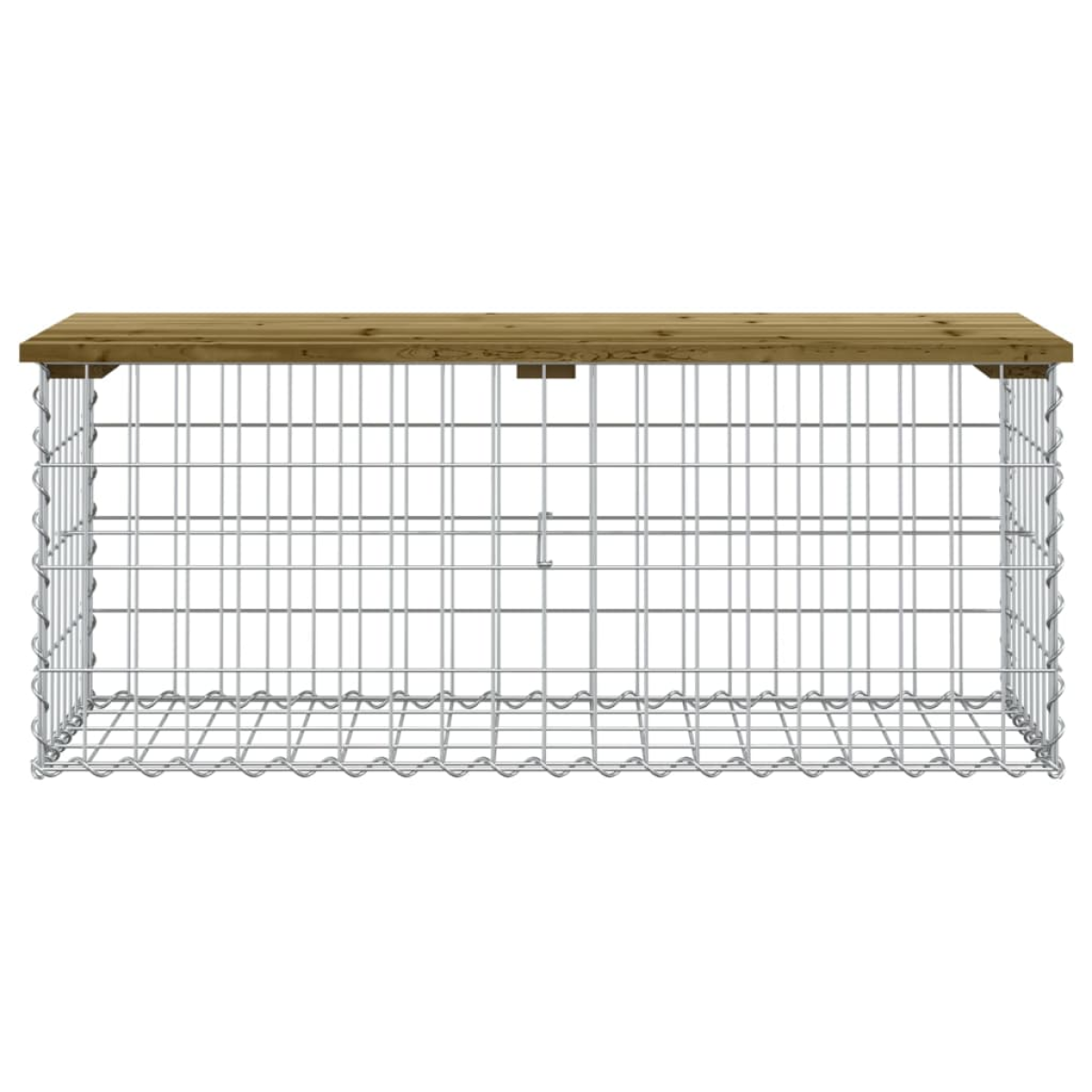 Create your own outdoor seating space with this garden bench! This garden bench will be a real eye-catcher in your outdoor living space. Impregnated wood: This top of the garden seat is made of vacuum pressure impregnated pinewood for durability. Solid pine wood is a beautiful natural material. It has a straight grain, and the knots give the material its signature, rustic look. Impregnation is a preservation process that is carried out by using autoclaves. The pressure-treatment increases resistance to decay and weather.Sturdy and stable base: This outdoor bench features a galvanised steel gabion basket base that is designed to be filled with rocks and gravels for additional beauty. The mesh grid of gabion basket is welded with transverse and longitudinal wires at every intersection for extra stability.Compact design: This garden bench seat is perfect for a limited space thanks to its narrow and compact design.Wide range of uses: This park bench is suitable for gardens, backyards, patio spaces, secret corner locations and more. Good to know:To make sure your outdoor furniture stays beautiful, we recommend protecting it with a waterproof cover.