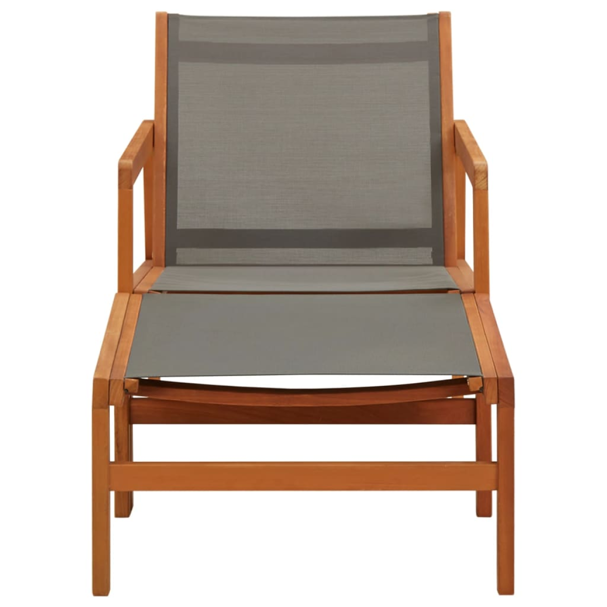 vidaXL Garden Chair with Footrest Grey Solid Eucalyptus Wood and Textilene