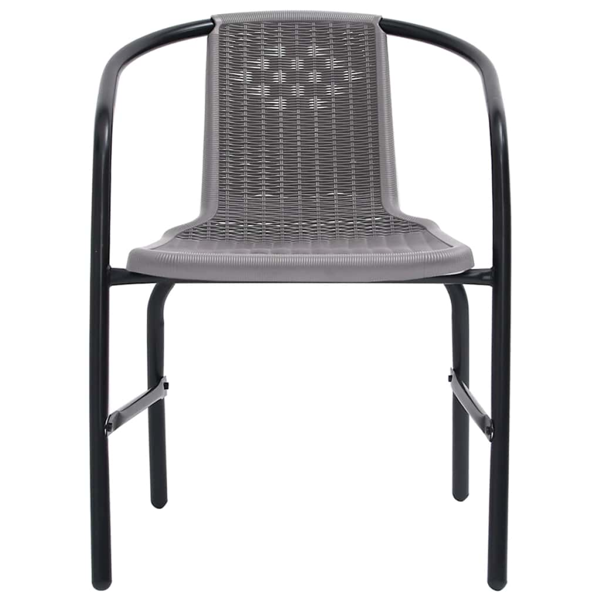 This garden chair set with rattan look, featuring an elegant and contemporary design, is an eye-catching addition to your outdoor living space. Thanks to the steel frame, the outdoor chairs are stable and sturdy. The plastic rattan seats add to seating comfort. Additionally, the armchairs are stackable to save space when not in use. Note: In order to extend the life of your outdoor furniture, we recommend you to clean it regularly and do not leave it outdoors without protection unnecessarily.Clean: Use a mild soap solutionStoring: If possible, store in a cool, dry place indoors. If the product is stored outdoors, protect it with a waterproof cover. Wipe and dry the excess water or snow from flat surfaces after a rain or snowfall. Allow sufficient air circulation to avoid moisture-related damage.