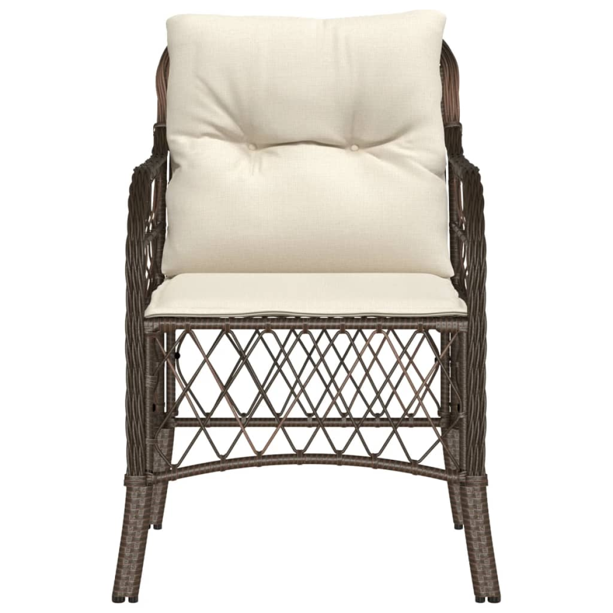 Relax and enjoy the outdoors in these comfortable garden chairs! Durable material: PE rattan, also known as poly rattan, is a strong, low-maintenance synthetic material that looks like natural rattan. It's lightweight, easy to clean, and commonly used for outdoor furniture due to its durability and weather-resistant properties.Comfortable seat experience: This outdoor furniture, complete with thickly padded cushions, offers a comfortable seating experience.Removable and washable cover: These seat cushions feature removable covers for easy washing and maintenance.Robust and stable frame: The powder-coated steel frame ensures the garden furniture is strong and stable for daily outdoor use. Good to know:To make sure your outdoor furniture stays beautiful, we recommend protecting it with a waterproof cover.
