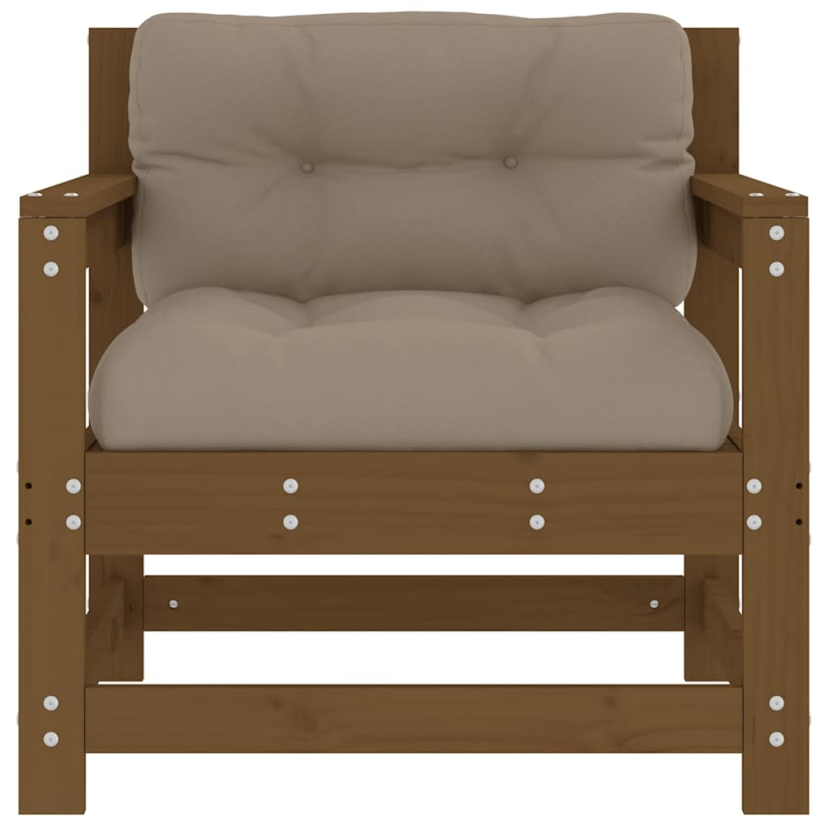 These wooden garden chairs, standing out with the slatted design and soft cushions, will make a great addition to your garden, patio, or terrace for enjoying a cosy time with your family or friends. Solid pine wood: Solid pine wood is a beautiful natural material. Pine wood has a straight grain, and the knots give the material its signature, rustic look.Sturdy and stable frame: The wooden frames make the lounger chair sturdy and stable for daily outdoor use.Comfortable seat experience: The backrest and armrest add extra seating comfort for the outdoor chair. Also, the thickly padded cushion provides comfort for your sitting time.Modular design: The patio chair is flexible and easy to move around. You can combine it with other modular segments in the webshop to create your own personal garden lounge set configurations! Good to know:To make sure your outdoor furniture stays beautiful, we recommend protecting it with a waterproof cover.