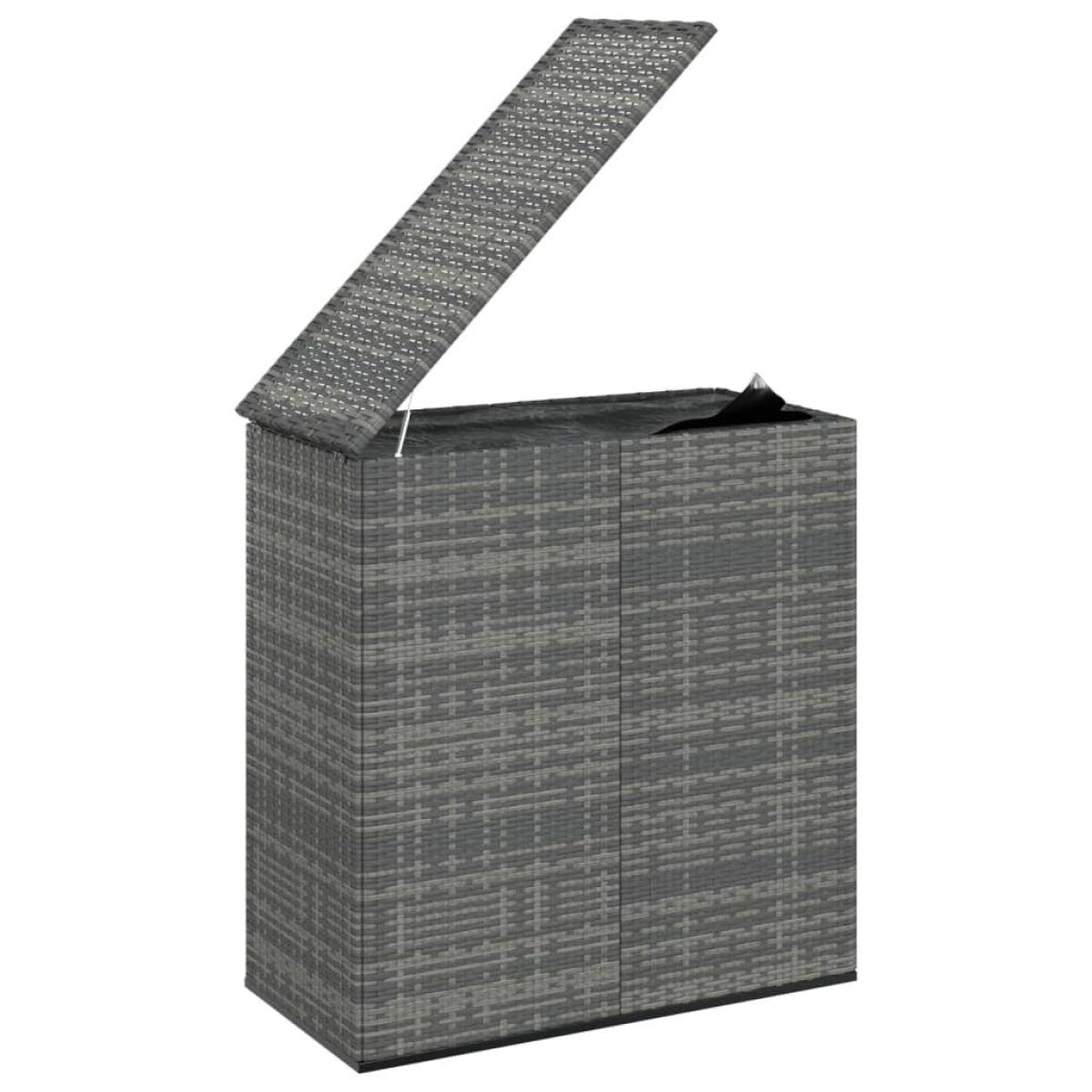 This simplistic PE rattan garden cushion box is an ideal choice for storing cushions, pillows, extra blankets, towels, household knick-knacks, and so much more. This garden storage box has a sturdy, powder-coated steel frame, which is highly durable. Thanks to the weather-resistant PE rattan, the storage chest is easy to clean, hard-wearing and suitable for both outdoor and indoor use. Also, the PE inner water-resistant bag with cover and zipper protects your items from moisture. Additionally, the cushion box features a gas lift mechanism that makes it easy to open and close, protecting fingers and hands from accidental closing. Note: In order to extend the life of your outdoor furniture, we recommend you to clean it regularly and do not leave it outdoors without protection unnecessarily.Clean: Use a mild soap solution.Storing: If possible, store in a cool, dry place indoors. If the product is stored outdoors, protect it with a waterproof cover. Wipe and dry the excess water or snow from flat surfaces after a rain or snowfall. Allow sufficient air circulation to avoid moisture-related damage.