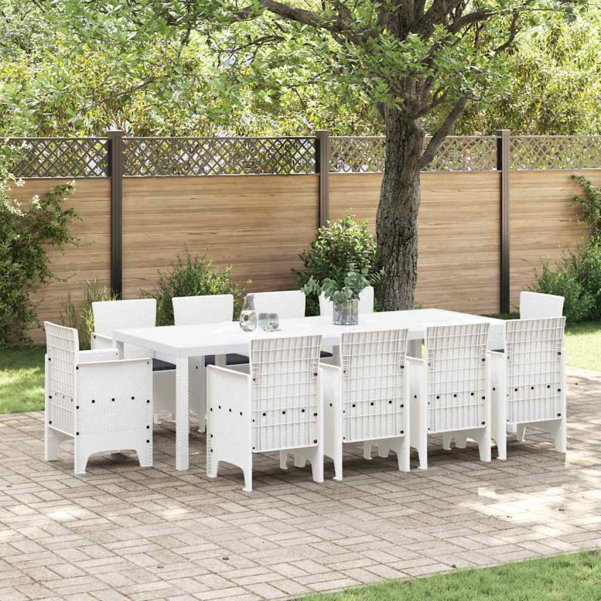 vidaXL Garden Dining Set 11 pcs White Polt rattan