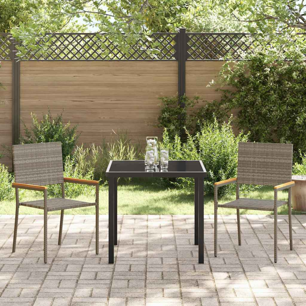 Check out this modern garden furniture set—it’s got the perfect mix of looks and practicality for outdoor living. With its clean lines and no-fuss style, it fits in beautifully with the garden, giving you a comfy spot to sit. Whether it’s for a garden party or just kicking back, this set makes any space look better and is super handy. Durable Materials: This set is made with tough poly rattan, so it lasts and stands up to the weather. It's teamed up with powder-coated steel, which boosts its durability and gives it a cool modern twist, making it great for outdoor use. Included Components: Each bit of furniture has poly rattan backrests, steel frames, and tempered glass tops to ensure they all look good and last. The solid acacia wood armrests add a nice touch and give you support. Contemporary Design: With its minimalist vibe, this set rocks sleek lines and square legs, making it perfect for modern gardens and terraces. It's easy to put together, needing just a screwdriver, keeping things fuss-free. Outdoor Uses: This furniture set is all about making gardens and terraces more enjoyable, giving you a comfy and stylish area for hanging out, whatever the weather—with materials that resist UV and water. Easy Maintenance: Keeping it clean is a doddle. Just use a cover when it’s not in use, avoid harsh cleaners, and wipe it down to keep it looking sharp over the years.