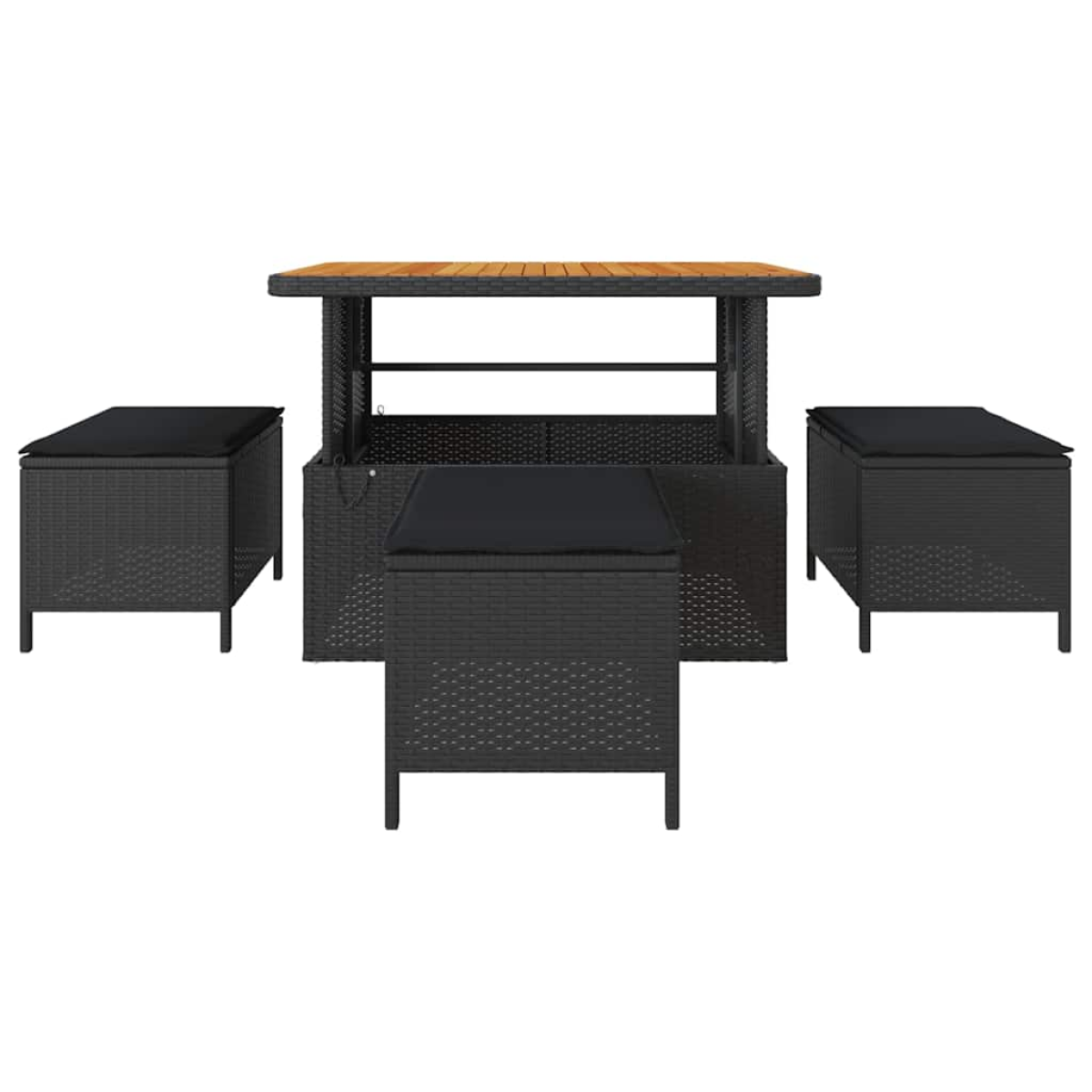 The Garden Dining Set brings together style and practicality, making it spot on for enhancing your outdoor hangout space. With its tidy lines and clever design, this dining set blends in nicely with your garden, terrace, or patio, giving you a great spot for dining and socialising outside. Poly Rattan Durability This dining set's made from poly rattan, known for being tough against the weather, ensuring it sticks around in your outdoor space. This poly rattan works well with the solid acacia wood parts, making a mix that's both good-looking and strong. Adjustable Features The set's got adjustable table height, so it's flexible to suit different needs. Whether you’re having a cozy family meal or a big gathering, the table adjusts easily to make everyone feel comfy and at home. Outdoor Exclusivity Specifically made for outdoors, this garden set holds up against all sorts of weather, thanks to its solid build and material choices. Its modern look amps up the charm of any garden or terrace, letting nature be part of your dining experience. Modern Simplicity The set sports a modern vibe, with a focus on simplicity and minimal decoration. The clean lines and functional parts shape its style, making it fit well with loads of outdoor design tastes, from modern sleekness to rustic warmth. Easy Maintenance Designed for easy care, the set only needs a few simple steps to keep its good looks. Just use a cover when you’re not using it and be sure to stash the cushions indoors during bad weather to keep them comfy and lasting long.
